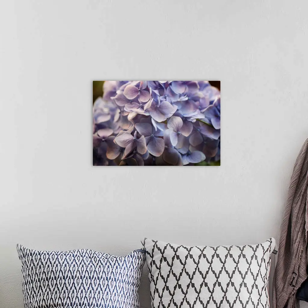 Photograph of an extreme close-up of a pale soft purple flowers.