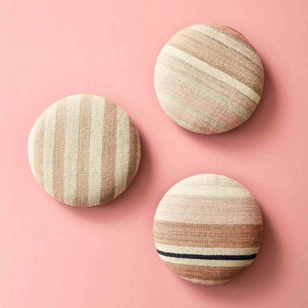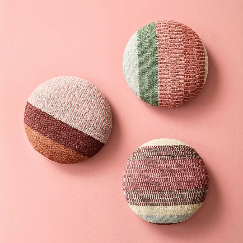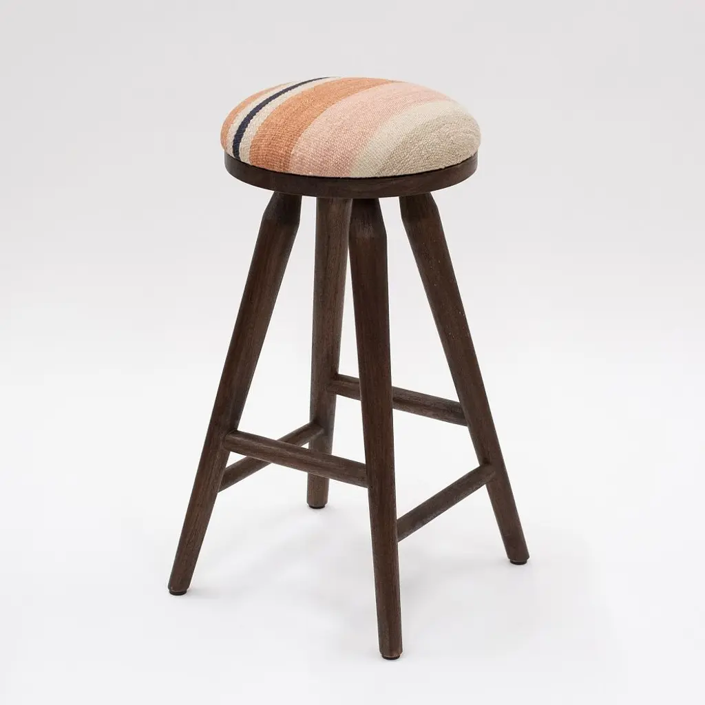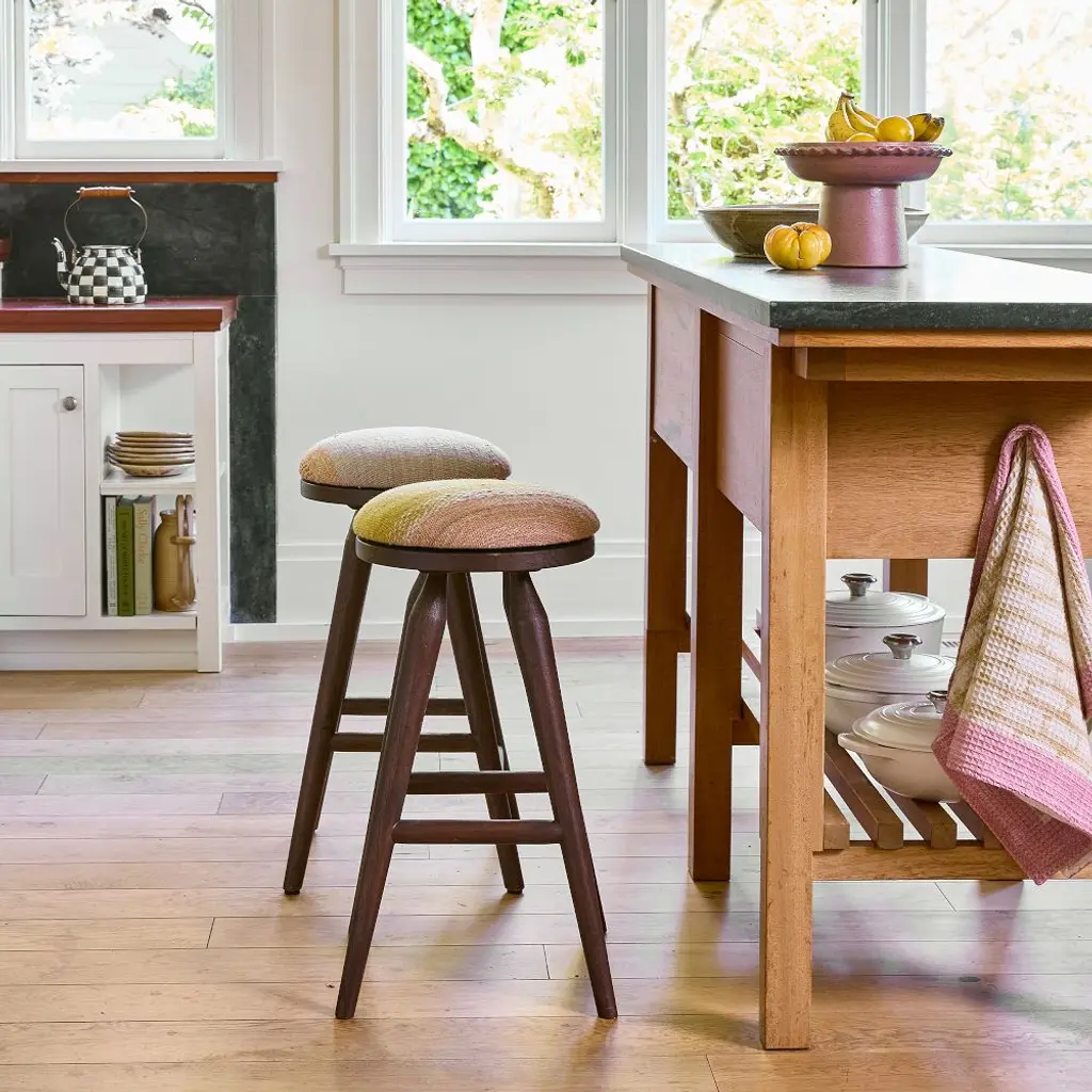 Timeless with a twist. Tapered legs and an espresso base make this FSC®-certified stool a classic, while each one-of-a-kind woven wool cushion easily pops off, so you can swap colors and patterns.