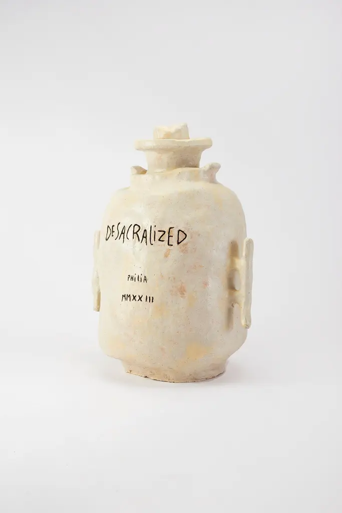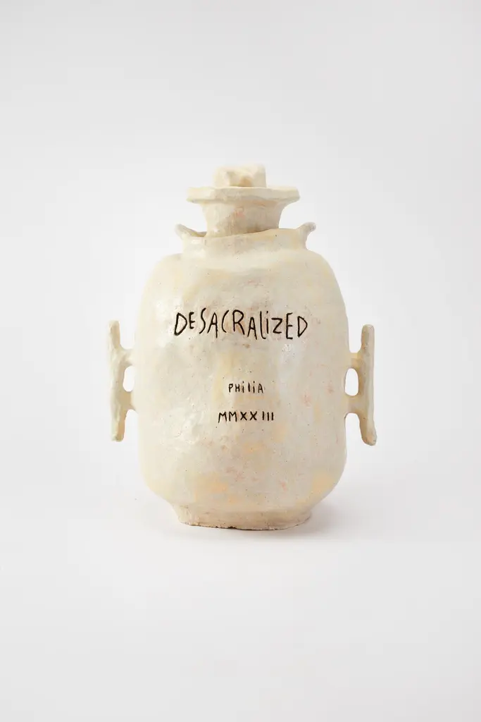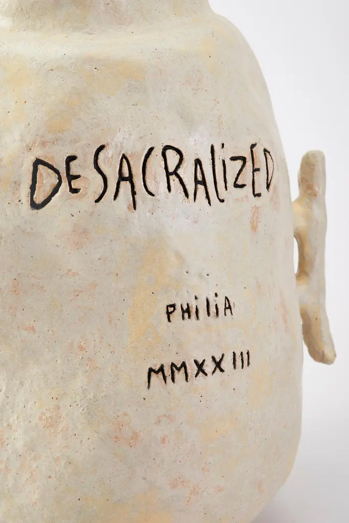 Desacralized Trophy by Willem Van HooffHandmadeDimensions: D 46 x H 63 cm (Dimensions may vary as pieces are hand-made and might present slight variations in sizes)Materials: Ceramic.Pedestal is included.Willem van Hooff is a designer based in Eindhoven.He is a driven builder, were he likes to see design as his tool to express an remember stories. He is fascinated how objects, buildings or traditions can capture stories. His stories always comes from my interest in history, the start of all his design projects. He likes to work with these old stories, techniques, cultures and give them new life in contemporary products.He feels the need to bring more freedom and joy back in making. He thinks this is lacking a certain form of imperfection, joy and traditions. Whichare not based on our consumerism world.