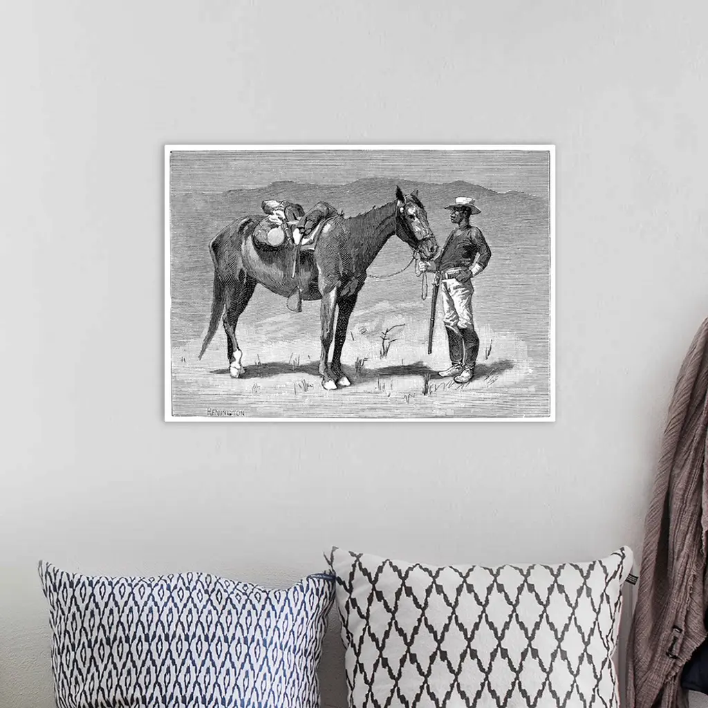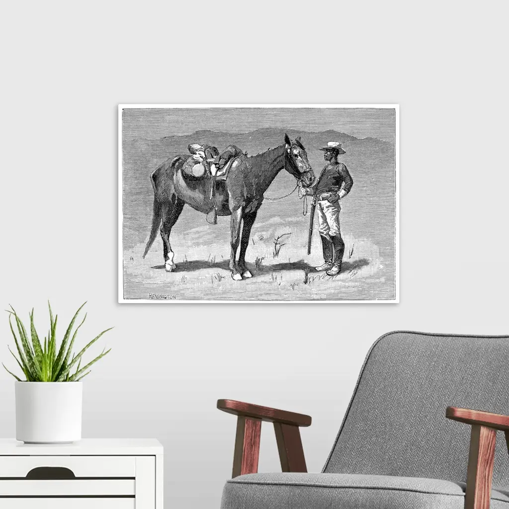 Remington, 10th Cavalry. 'One Of the Real Heroes Of Hard Marching.' Enlisted Man Of the 10th Cavalry, Known As Buffalo Soldiers, On Maneuvers In Arizona. Wood Engraving, 1888, After Frederick Remington.