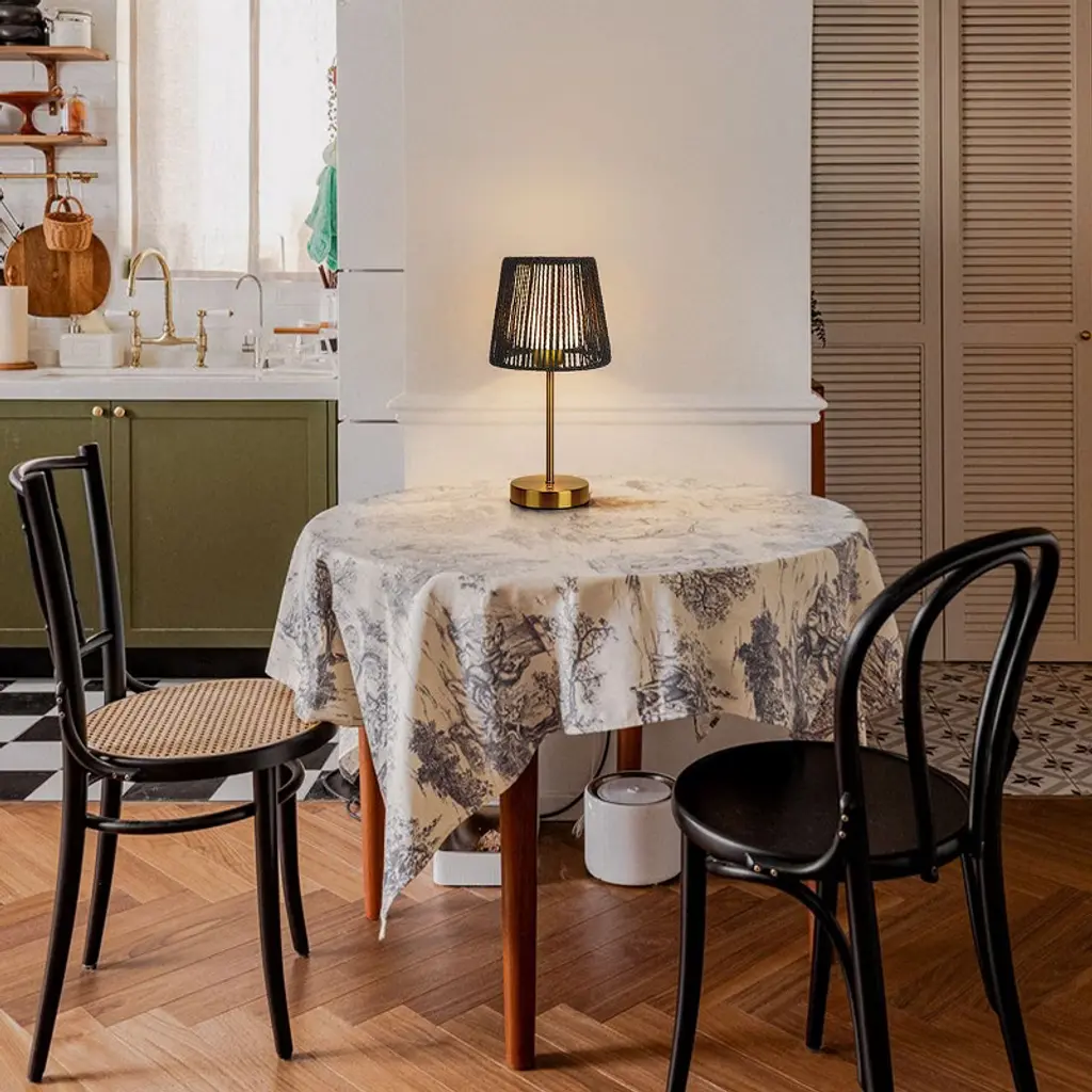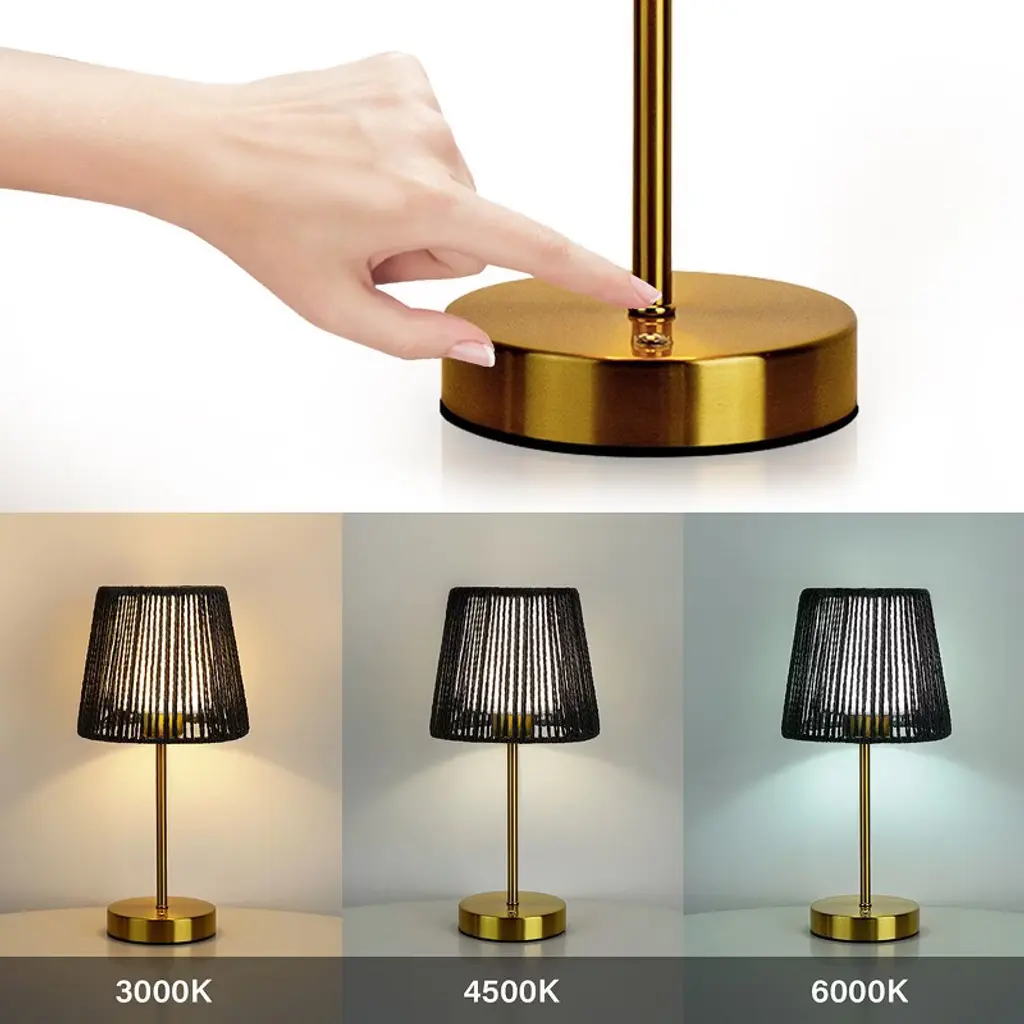 Onewish Portable Metal Table Lamp for Indoor/Outdoor ,Rechargeable Cordless LED Lamp, 3-Colour Infinitely Dimming Battery Powered Small Desk Lamp, Stringing Textile Shades with retro and elegant style , It is a multipurpose lamp,ideal for home decor, living room, bedroom, balcony, night stand, dinner table, outdoor party, backyard, BBQ, ambience lighting, etc.