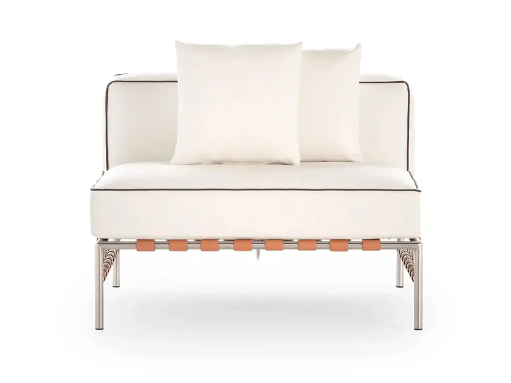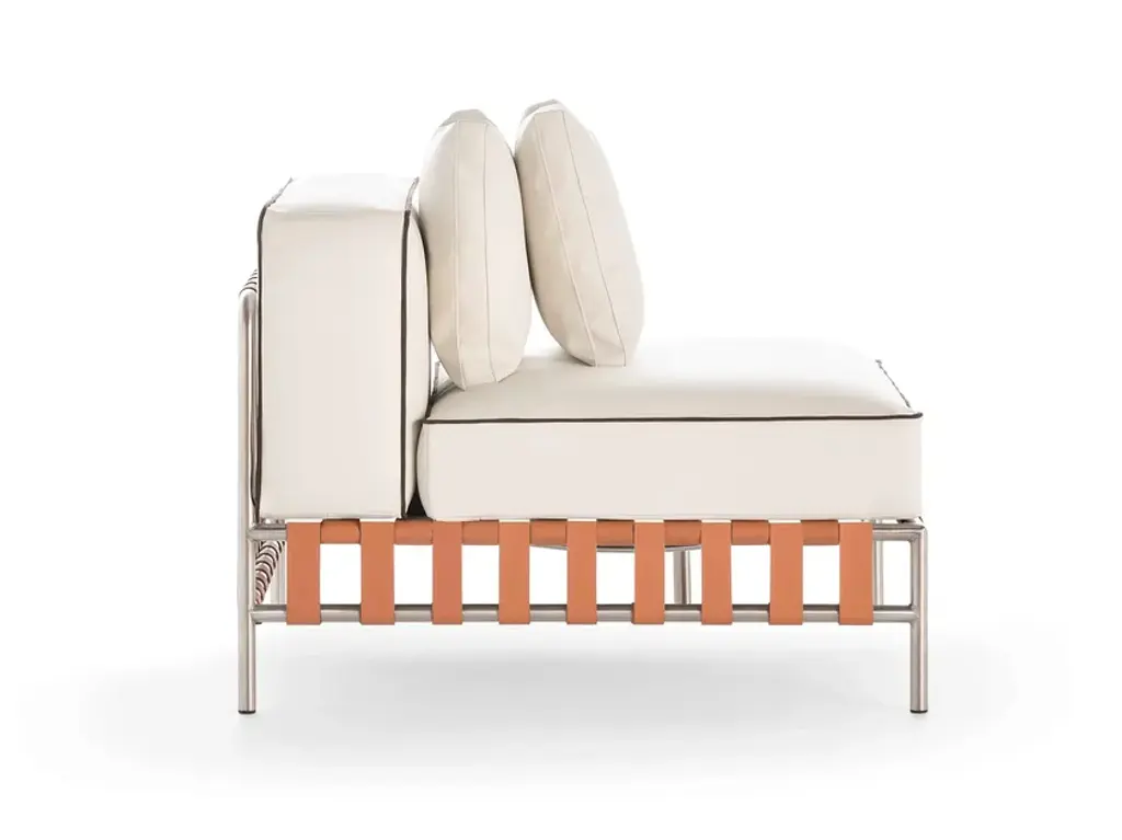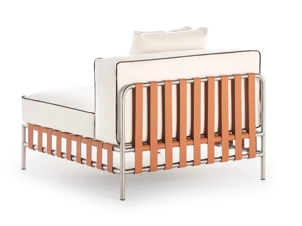 Francesco Meda and David Quincoces are teaming up with GANDIABLASCO to design a collection destined to become an icon of timeless design. Young talent, innovation and the brand’s extensive background bring us a classic from the future.ONSEN is a collection of outdoor furniture of peaceful beauty where the most linear and essential is charged with uniqueness in every gesture. A collection composed of dining club armchair, sofa, lounge chair, modular sofas and different low tables that masterfully combine such different materials as stainless steel, elastic straps, aluminium sheet and teak, to integrate them in perfect harmony.“I like to emphasize the particularities of the materials I use to put them at the service of both functionality and relaxed aesthetics. The key is always to make sure that the details are not just details”, argues Meda.With geometric, generous and simple lines that are devoid of all pretense, the pieces by ONSEN exude freshness and sophistication and stand out for their versatility, allowing the space to be modulated in combinations that sometimes give rise to splendid retreats for relaxation and on other occasions can become a little more formal and compact.One of the distinctive aspects of the collection is that the seats and backrests rest and are raised on a succession of leather straps interlaced and fixed to a stainless steel tubular structure. The graphic and aesthetic component finds here the same weight as the technical solution. “The idea was to generate a contrast between the fabric and the metal structure together with the geometry and transparency provided by the strips”, details Meda.This play between the lightness and warmth provided by the aluminium and the leather respectively becomes the identity of ONSEN conceived by the Milanese designer.