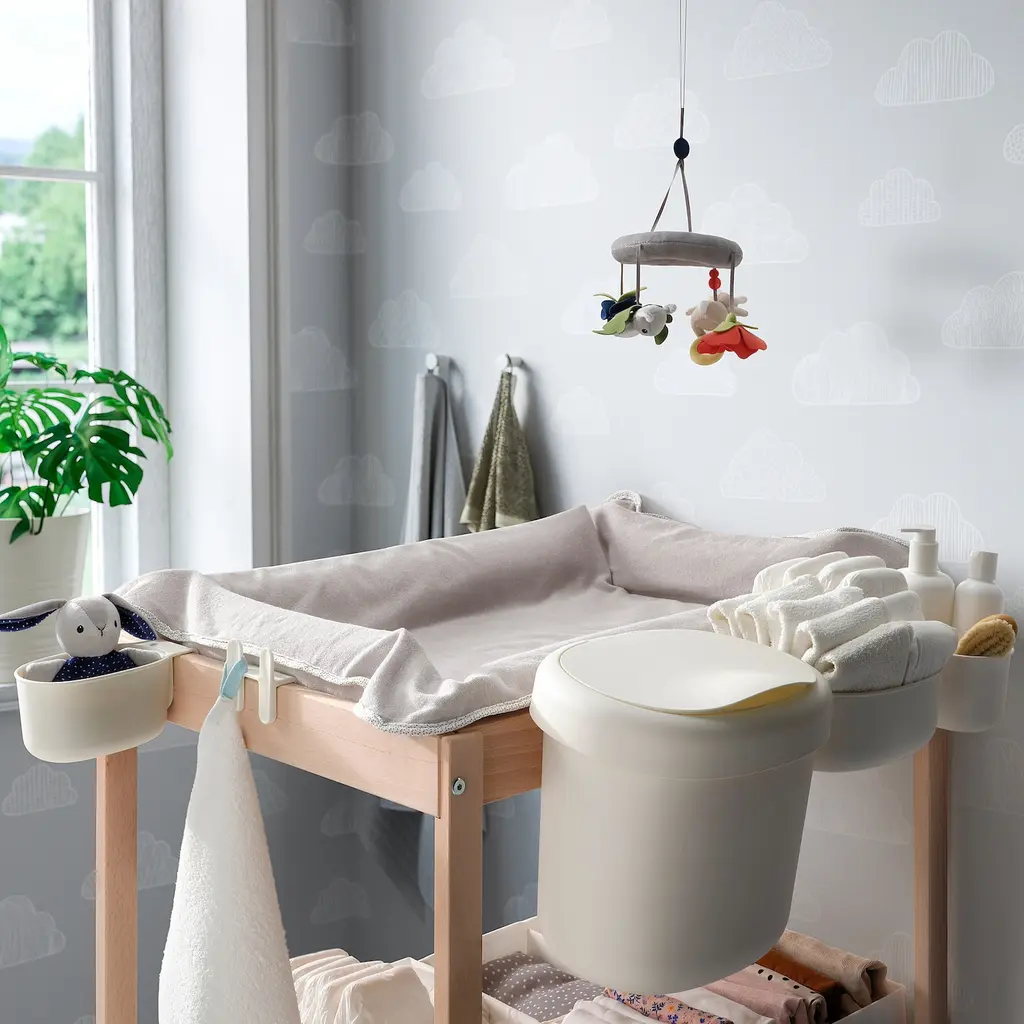ÖNSKLIG Racks for changing table, set of 4 - white. With these storage baskets you can have everything from diapers and washcloths to skin care products and towels close at hand by the changing table. Perfect when you have a lively baby who requires all of your attention.