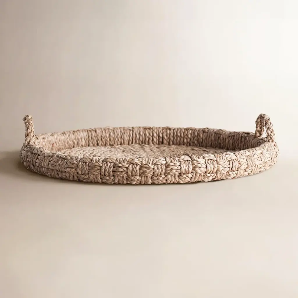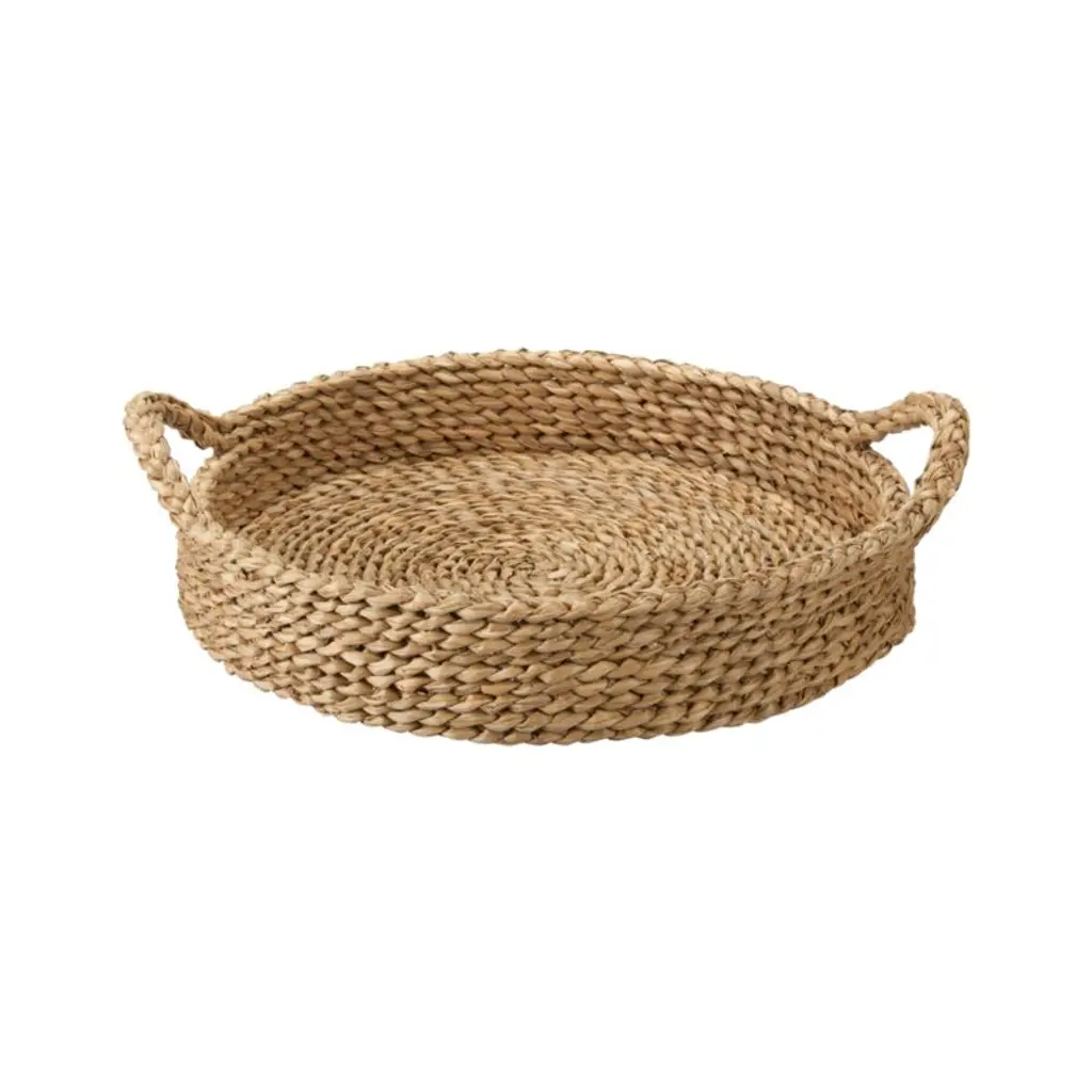 From the strong, flexible vines of grown bangkuang, a highly sustainable Asian water hyacinth, artisans hand braid and coil strands to craft these versatile trays, cleverly looping the top braid twice for handles. Great for serving or for staging a tabletop display.