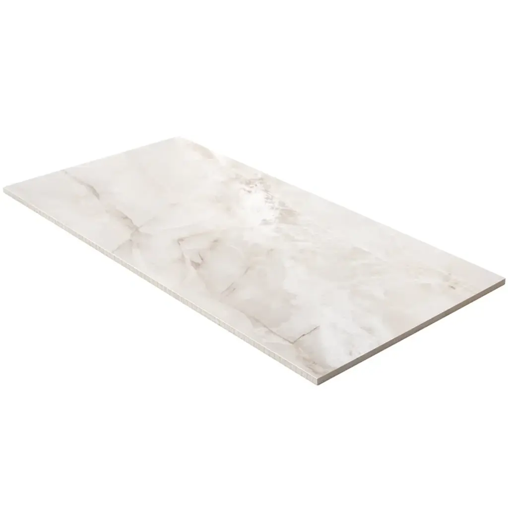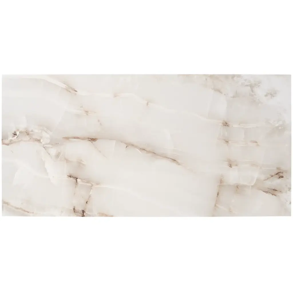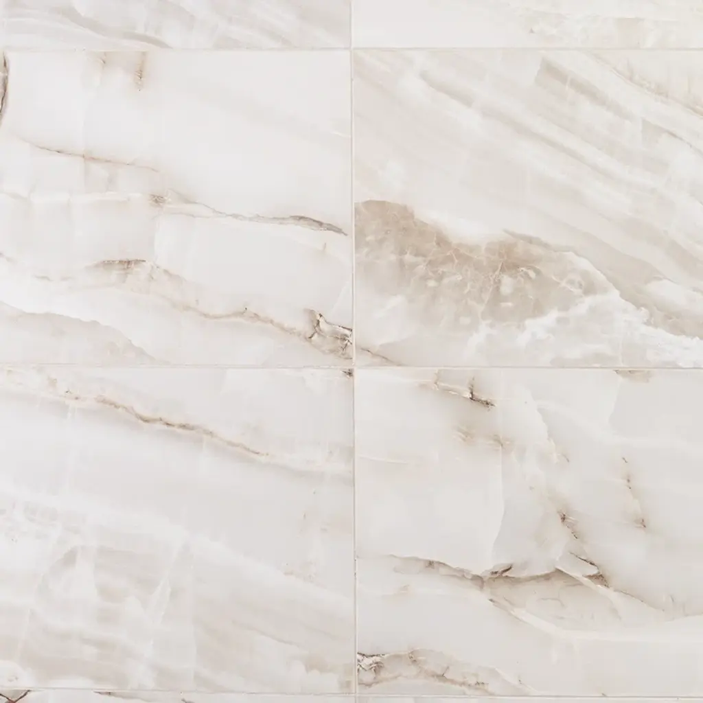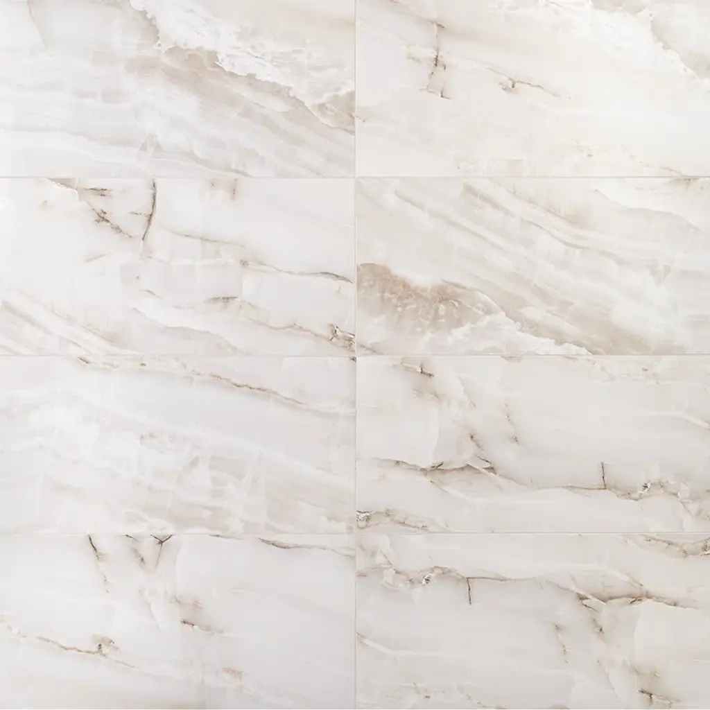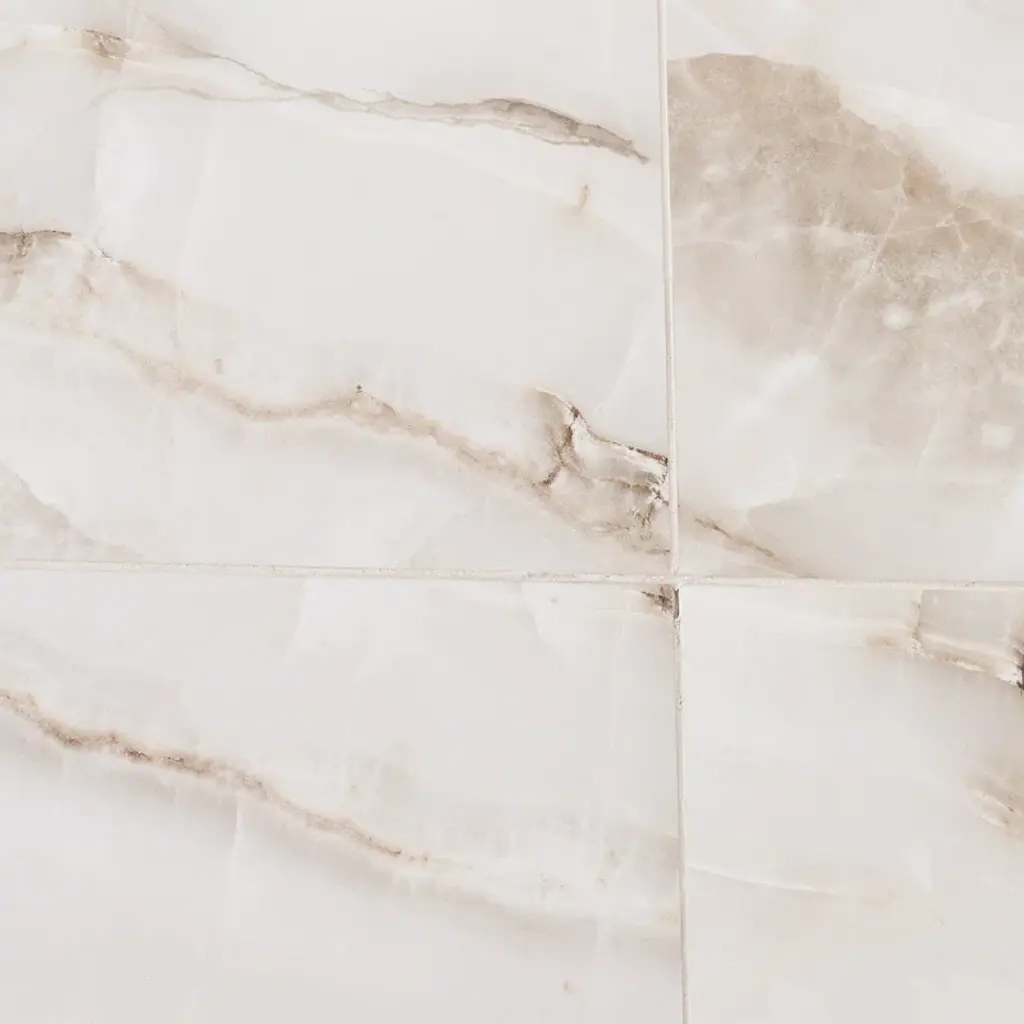 Introduce a lavish touch to your space without the price tag. The Essential Onyx is a 12x24 matte porcelain tile that captures the beauty of real stone with the durability of porcelain. The white background and tan/beige veining gives the tile a sense of movement and creates an atmosphere of class. Use in your bathroom or kitchen to give your space an undeniably stong look.