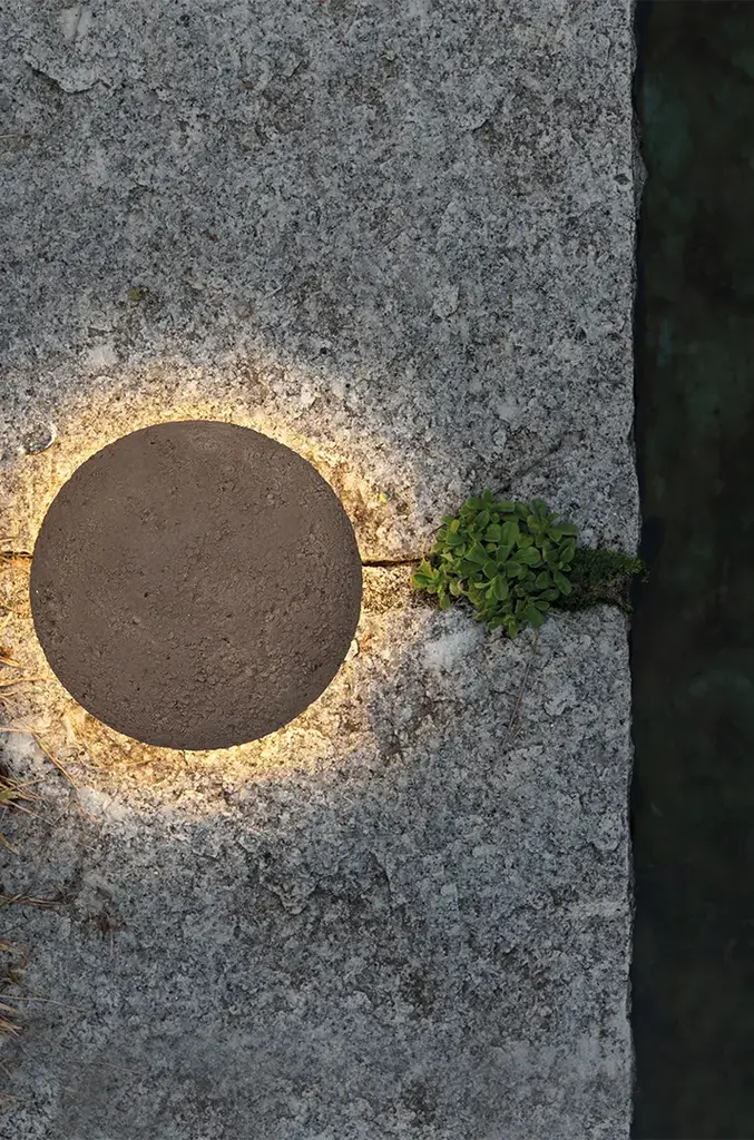 9010novantadieci completes the collection with a particular stemless version: OOLITE TERRA. A pathmarker specifically designed to illuminate and define paths and transit areas.The iconic head of OOLITE is paired with a diffuser, creating a 180° grazing light, functional and with minimal aesthetics. Like a water lily floating on the water , OOLITE TERRA becomes a luminous element that floats in open spaces, attracting the eye and accompanying the footsteps.Oolite is a LED outdoor BETALY® bollard light. Available in the following variants: Oolite Smooth, Oolite Grit, Oolite Rough, Oolite Cup, Oolite Big, Oolite Terra.Technical specificationsLight source LED 4,5WTension 24Vdc (Remote constant voltage driver is required)Colour temperature 3000°K (On request available in other color temperatures)Lumen 600lmCRI 80IP65OOLITE translates the relationship between nature and design into light. A respectful dialogue between functionality and essential forms is expressed through this lighting element; manufactured in extremely tactile finishes and colours, it is fully integratable green spaces. Its long and slender form can be inserted into larger spaces, such as outdoor areas bordering paths and patios, or in flowerpots and gardens.9010novantadieci takes the richness of an artisan past and turns it into a vessel for something completely new: a highperformance material suitable for outdoor spaces. Nature gives us a raw material that’s tangibly practical and can be used for any type of outdoor space. It combines material strength and lightness of form, versatility and characterful design. BETALY® by 9010novantadieci is a compound that makes every item unique, thanks to its distinctive artisan finish.