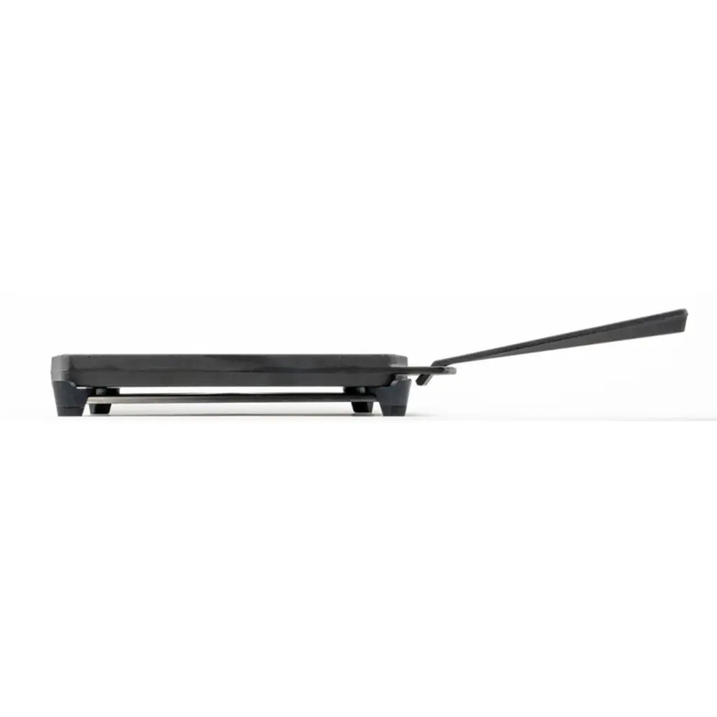 This cast iron pan does double duty as grill and griddle. The smooth sizzler side is perfect for frying up bacon, eggs or fajitas, while the ribbed side imparts seared grill marks on steaks, salmon and veggies. Removable handles latch onto the pan to safely move the grizzler plate in and out of the oven or Ooni pizza oven (sold separately) or onto the included stainless steel trivet for serving.