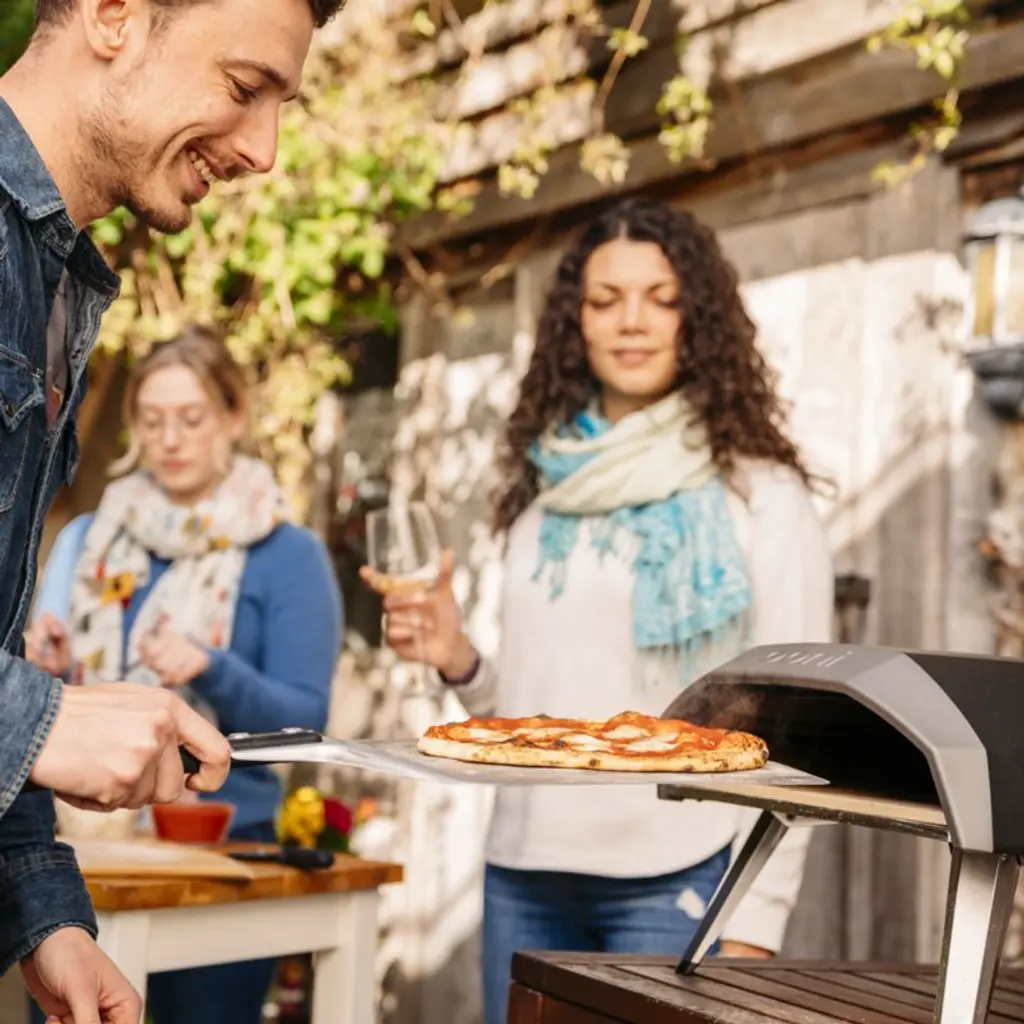 With a heating capability that rivals large professional pizza ovens, the compact Ooni Koda 12 outdoor pizza oven cooks pies to perfection at homeor anywherein 60 seconds flat. The gas-powered oven heats to impressively high cooking temperatures in just 15 minutes, with the built-in gas ignition and adjustable heat control dial keeping things simple. The cordierite pizza stone retains and diffuses heat well, for a baking board that creates ideal crusts. The sleek carbon steel oven brings a dynamic, modern look to your porch, patio or any outdoor feast, then the legs fold away easily for compact storage.View all Ooni pizza ovens