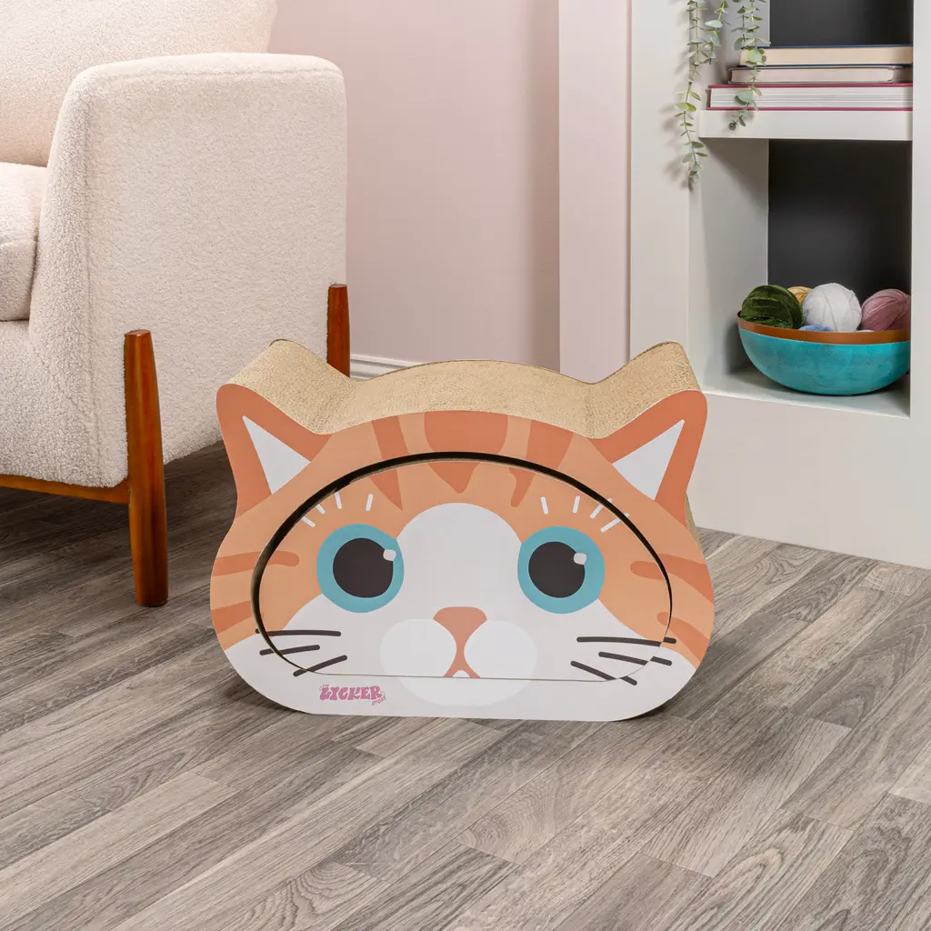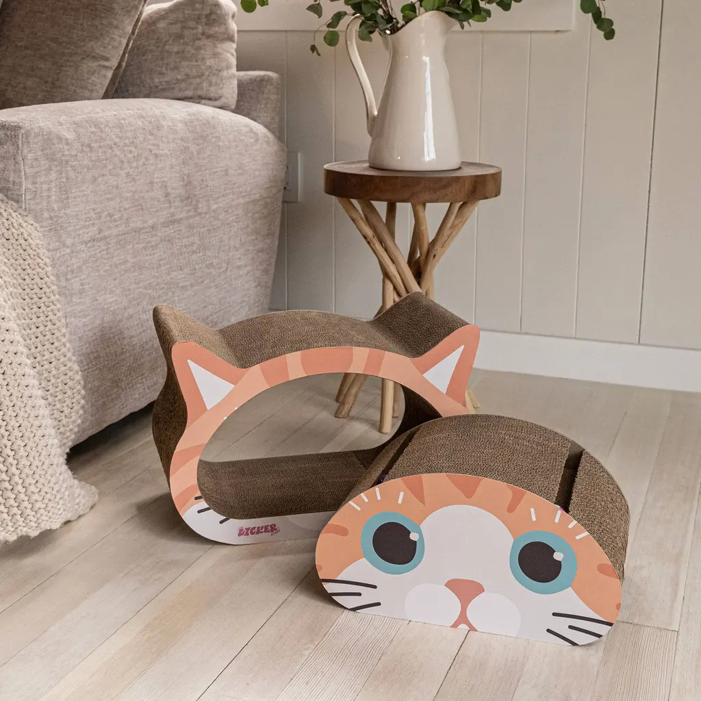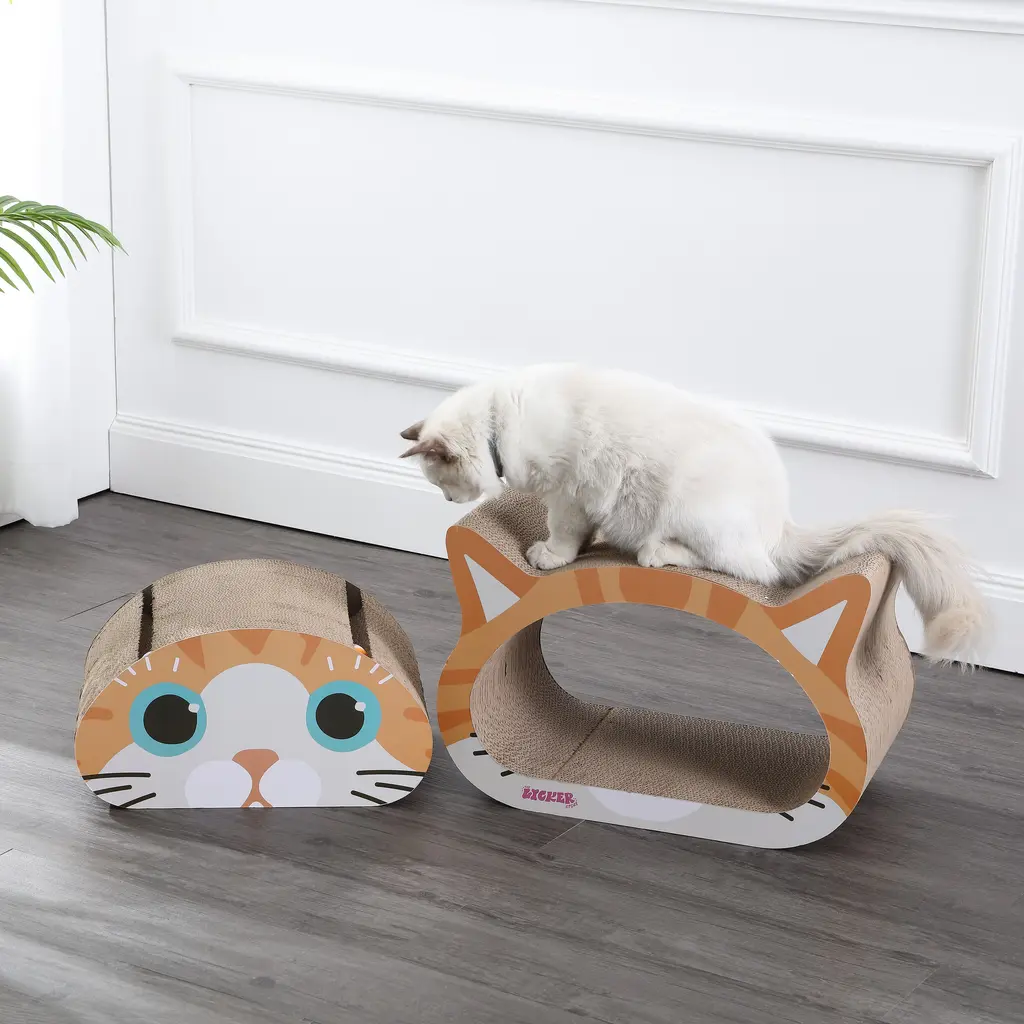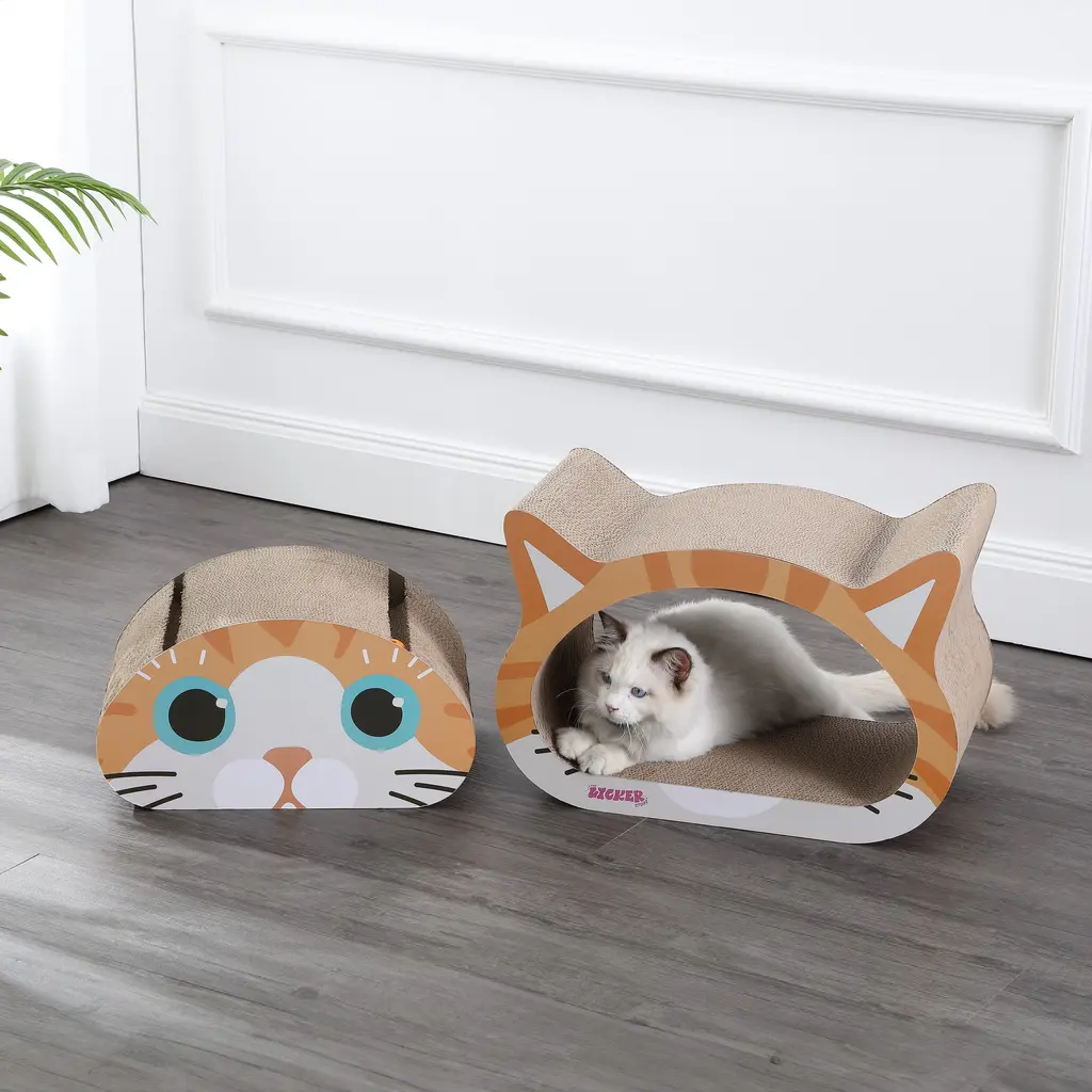 Keep your cats active and healthy with our two-piece scratch and play set. The adorable cat head design is made from corrugated cardboard that kitties love. Simply pull out the center to create a cat cave for stalking or hiding out.Features:Product Care:About us:Our passion is providing high-quality pet products that enhance the lives of both pets and their owners.