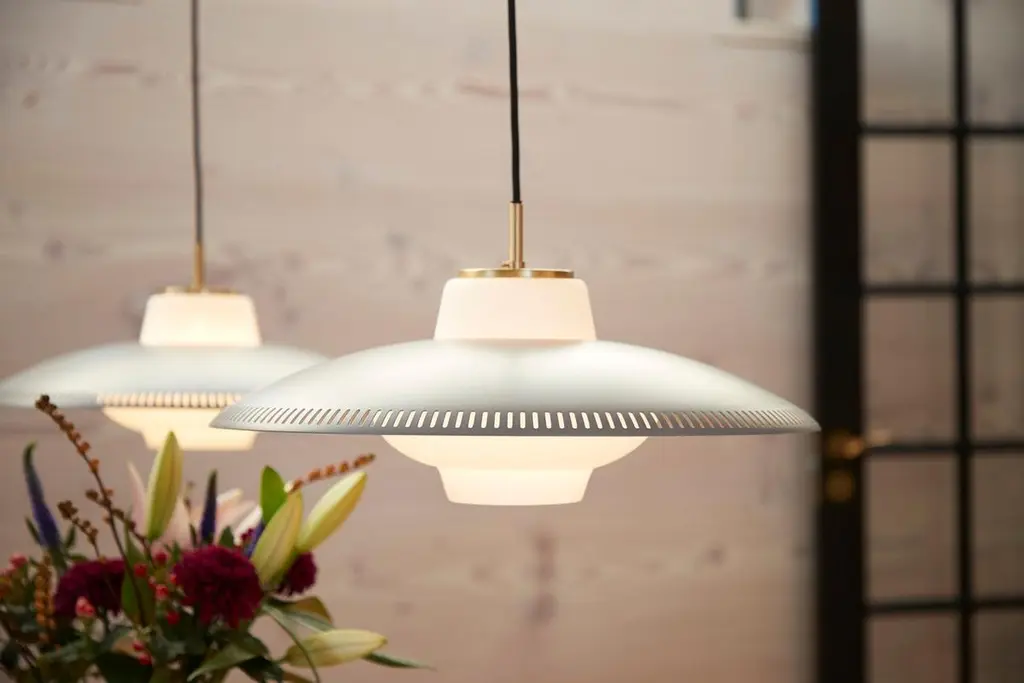 Opal shade Illuminating yellow pendant by Warm NordicDimensions: D 43 x H 17 cmMaterial: Lacquered steel, Sand blasted opal glassWeight: 2 kgAlso available in different colours.The Opal Shade pendant was designed in the 1950s by Danish light master Svend Aage Holm-Sørensen. Opal glass offers something special when it comes to light, and the internationally renowned light designer chose opal glass for the Opal Shade pendant to create a special warm glow. Combined with the grooves in the wide metal shade, this creates an exciting and elegant light effect. With its Classic shape, sophisticated solid brass details and high quality craftsmanship, this pendant is a beautiful feature above the dining table or the kitchen table, in the hallway or in a nook where it will create life and attention.Warm Nordic is an ambitious design brand anchored in Nordic design history and with a timeless, aesthetic style that inspires you to appreciate the little things in life. The company is the result of several years’ intense work on developing a new design brand with design history, quality and personality at its core. Warm Nordic boasts a colourful and charming universe of furniture, lamps and accessories full of personality. Our designs encapsulate the Nordic spirit, which in its essence is timeless, inclusive and warm.