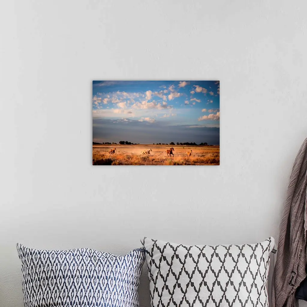 horses running in open landscape
