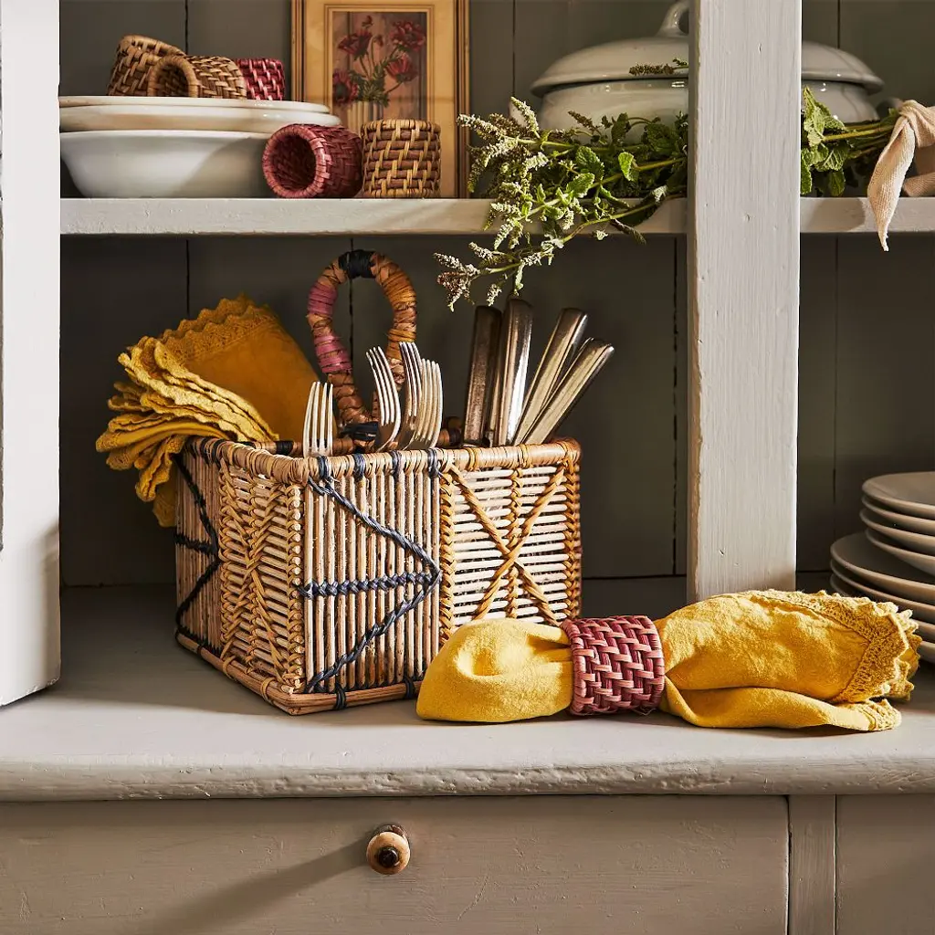Cue the color. Handwoven in the Philippines from lampakanay grasses, this chic and easy utensil caddy makes everyday meals more fun.