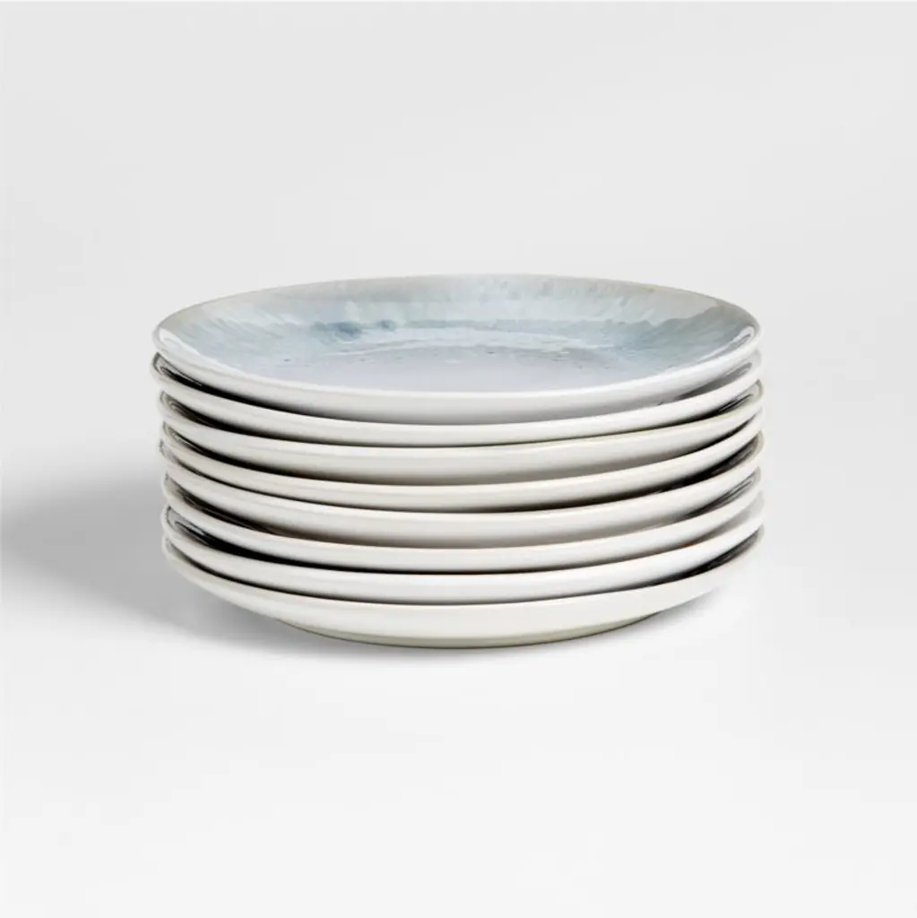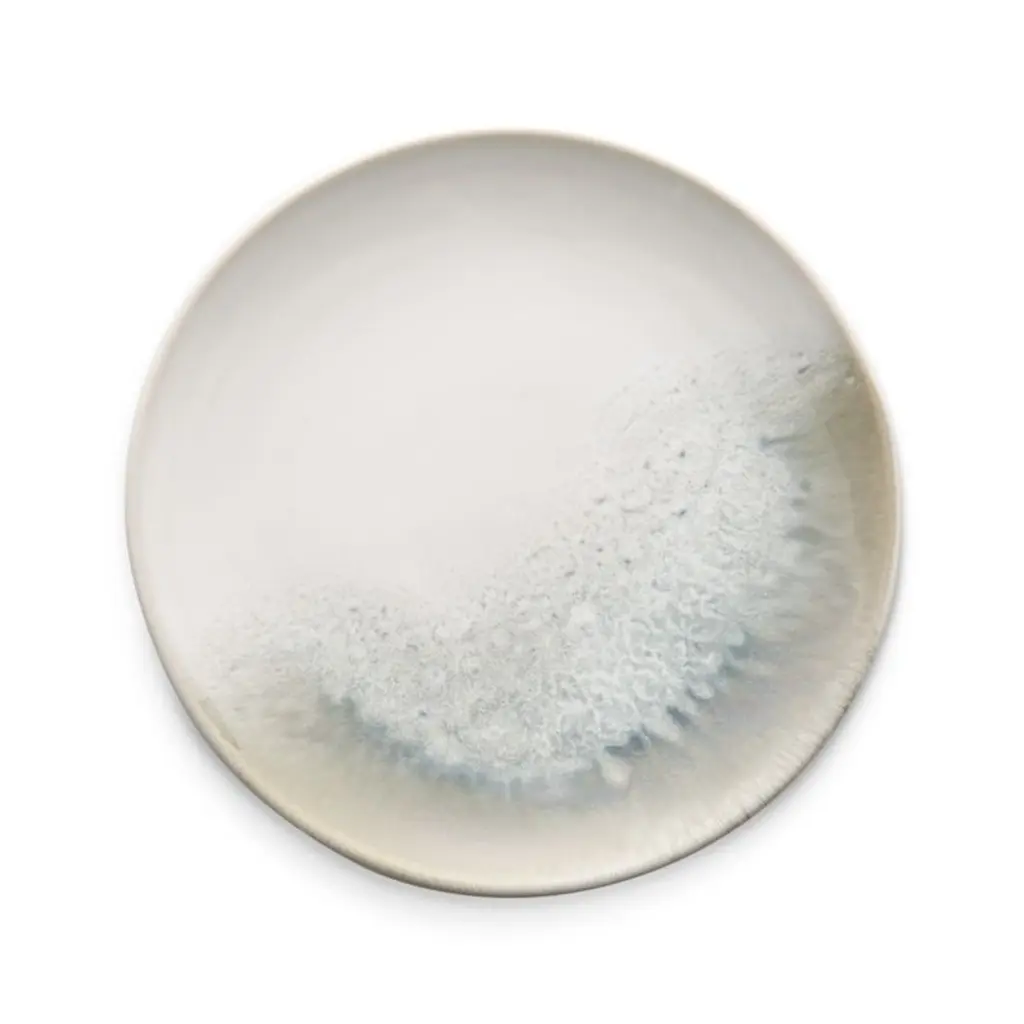 Awash in serene shades of green, grey and blue, our Ora salad plate enchants with clean lines and the unpredictable nature of reactive glaze. Hand-applied glaze sheets, pools and crackles on the plate in a captivating array that's unique to each piece. Suggestive of water washing over a sandy beach, Ora sets a striking table for casual dinners as well as formal affairs.