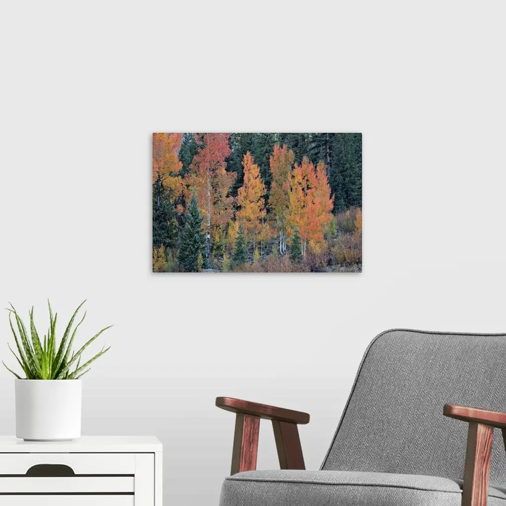 Orange aspens in the fall, San Juan National Forest, Colorado, USA wall art for home and office decor. Discover canvas art prints, photos, mural, big canvas art and framed wall art in GreatBigCanvas.com's varied collections.