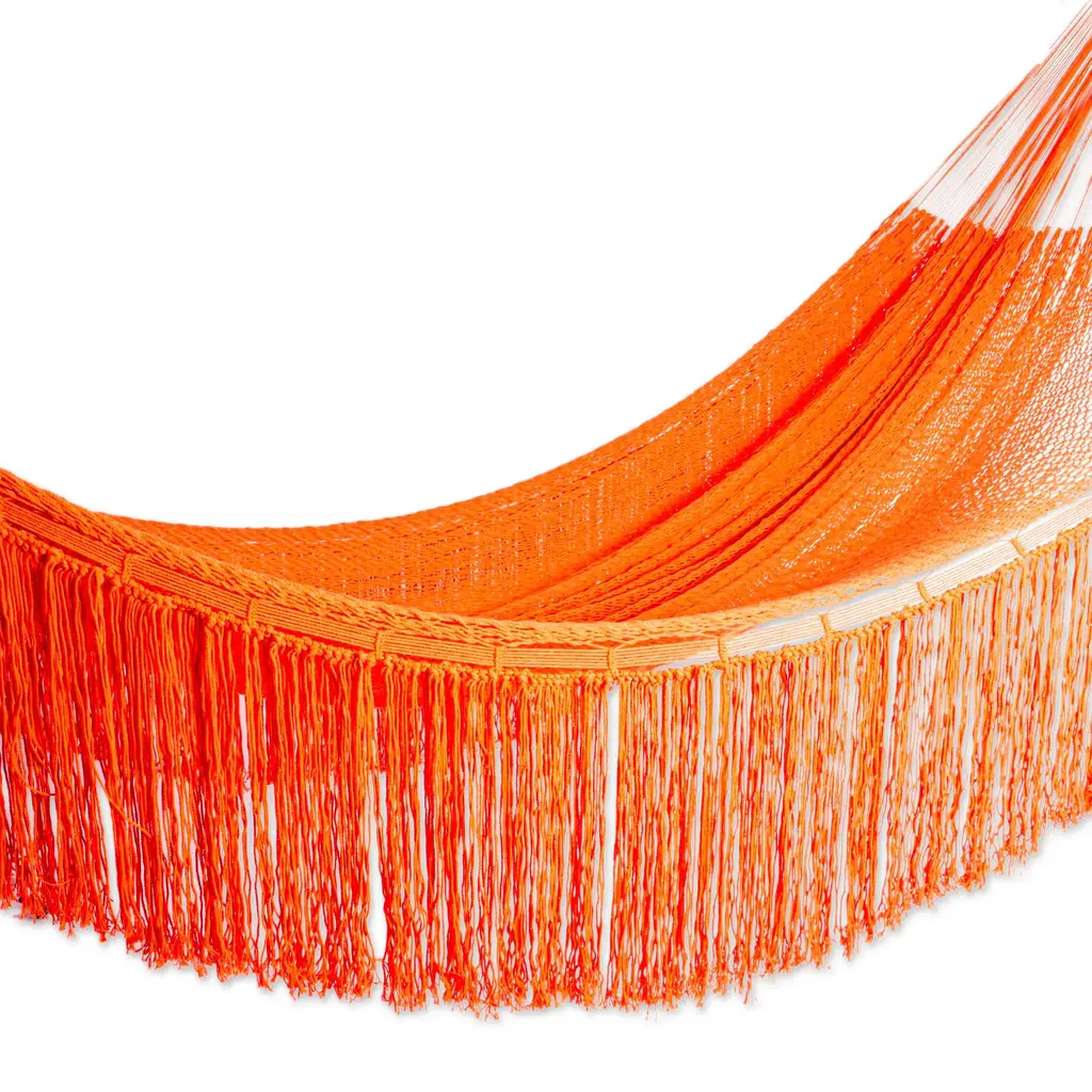 Orange Fringed Cotton Rope Hammock (Triple) From Mexico- Orange Cascade