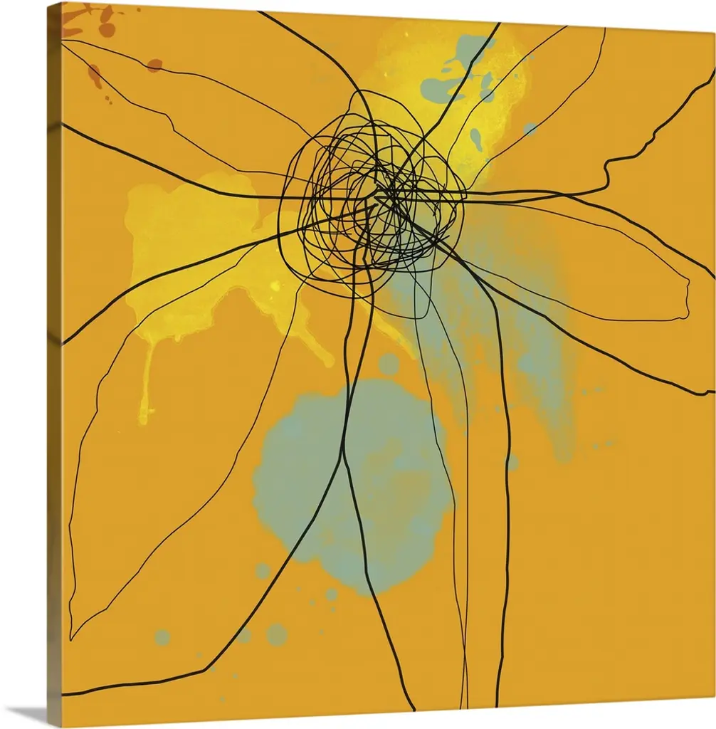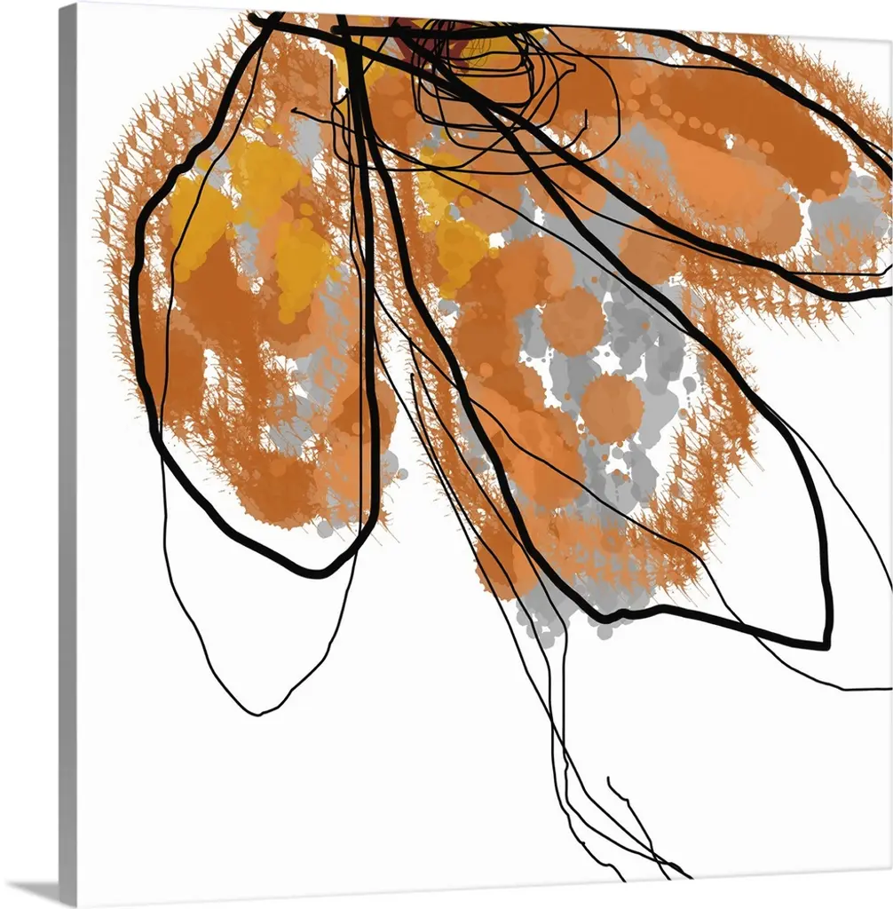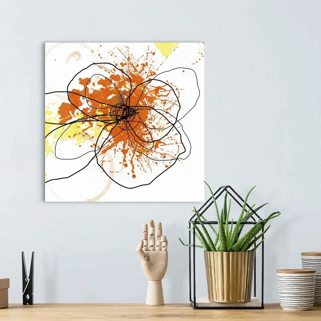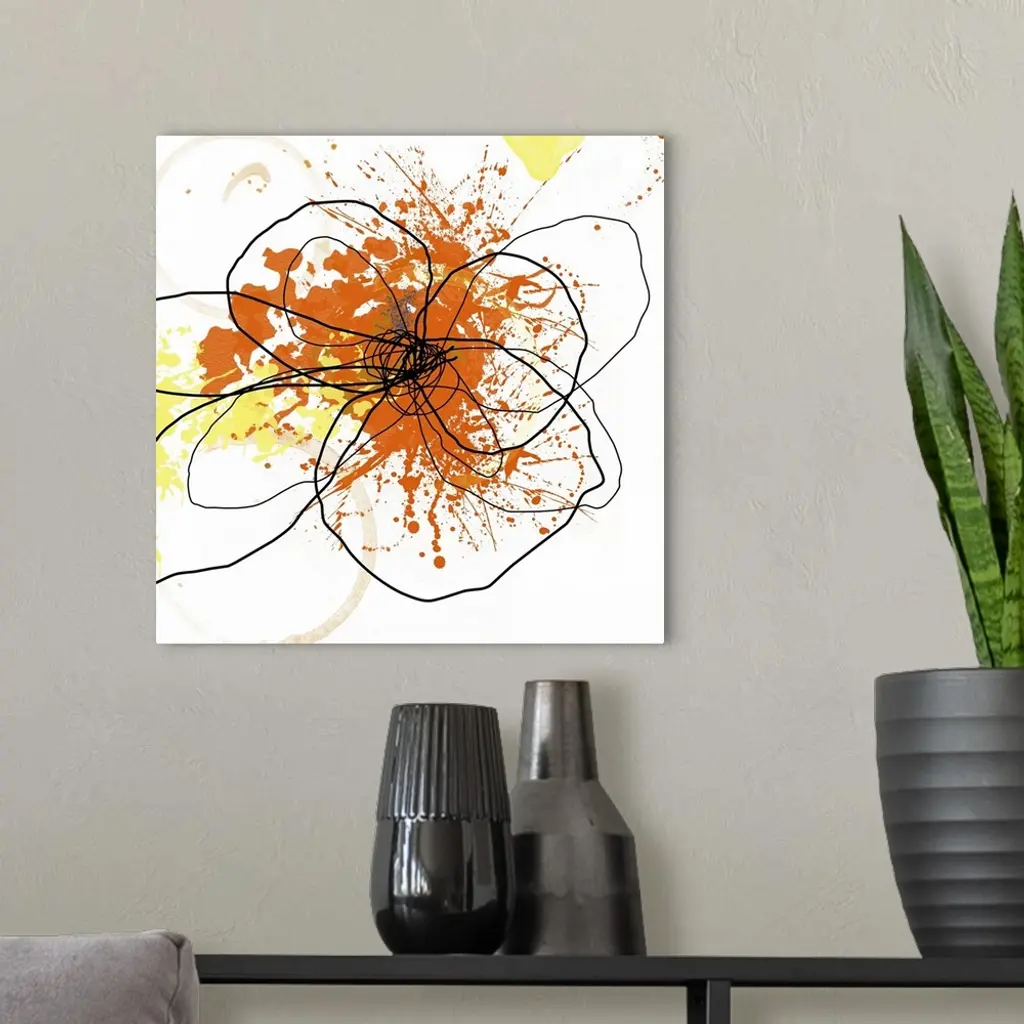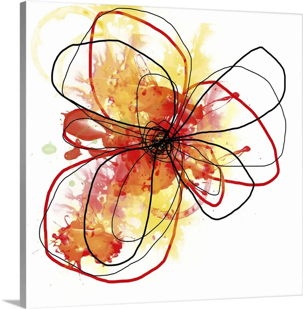 Contemporary art print created using splatter techniques and layering to create depth and texture. The form resembles a flower.