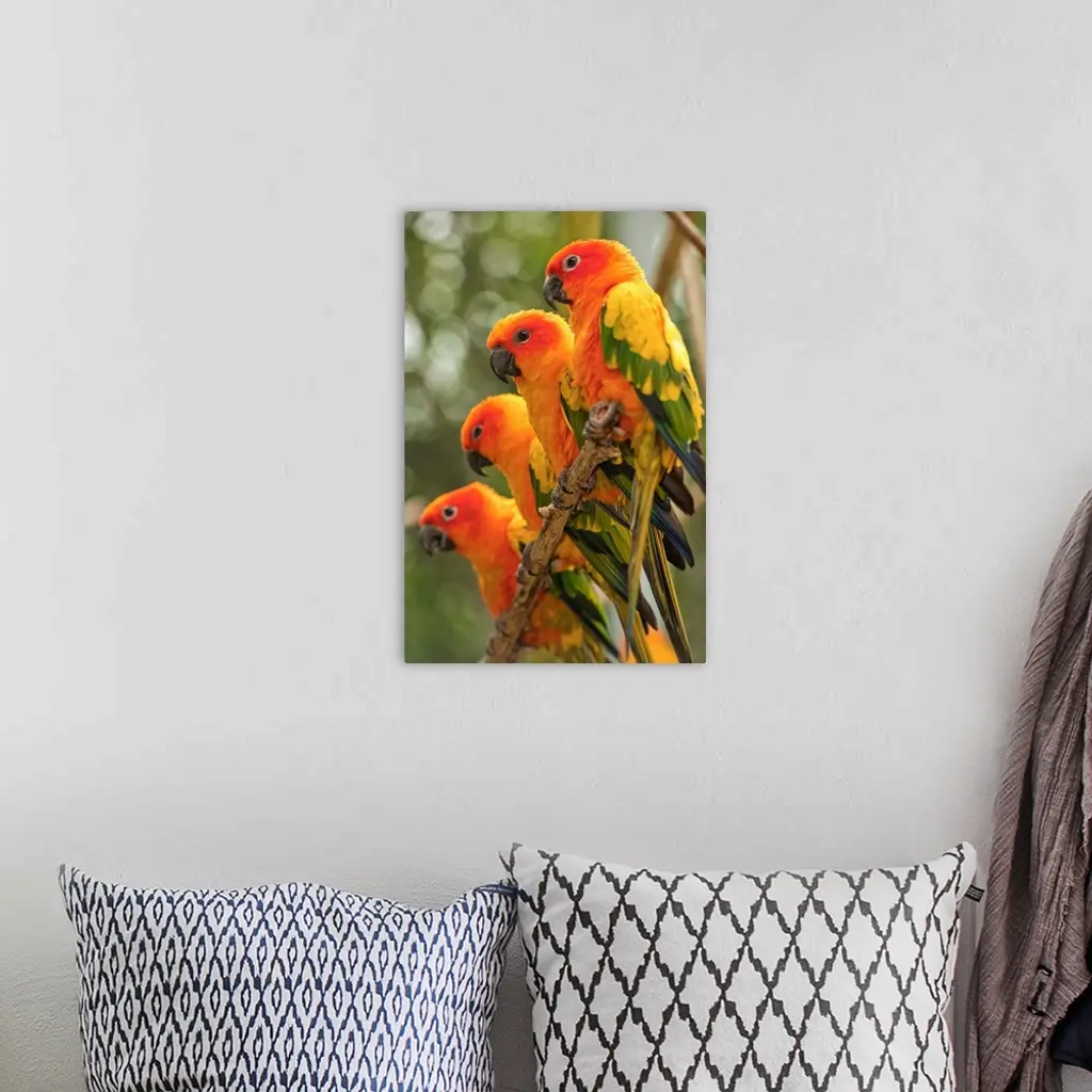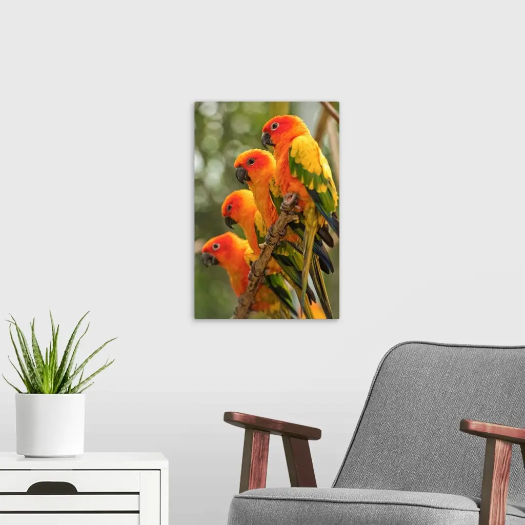 Orange Parakeets; Chiang Mai, Thailand wall art for home and office decor. Discover canvas art prints, photos, mural, big canvas art and framed wall art in GreatBigCanvas.com's varied collections.