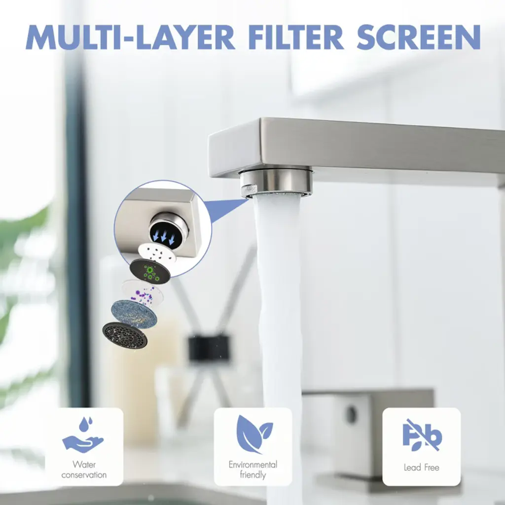 Oil-rubbed bronze (ORB) waterfall faucet with single handle mixer and pop-up drain for modern bathroom sinks.
