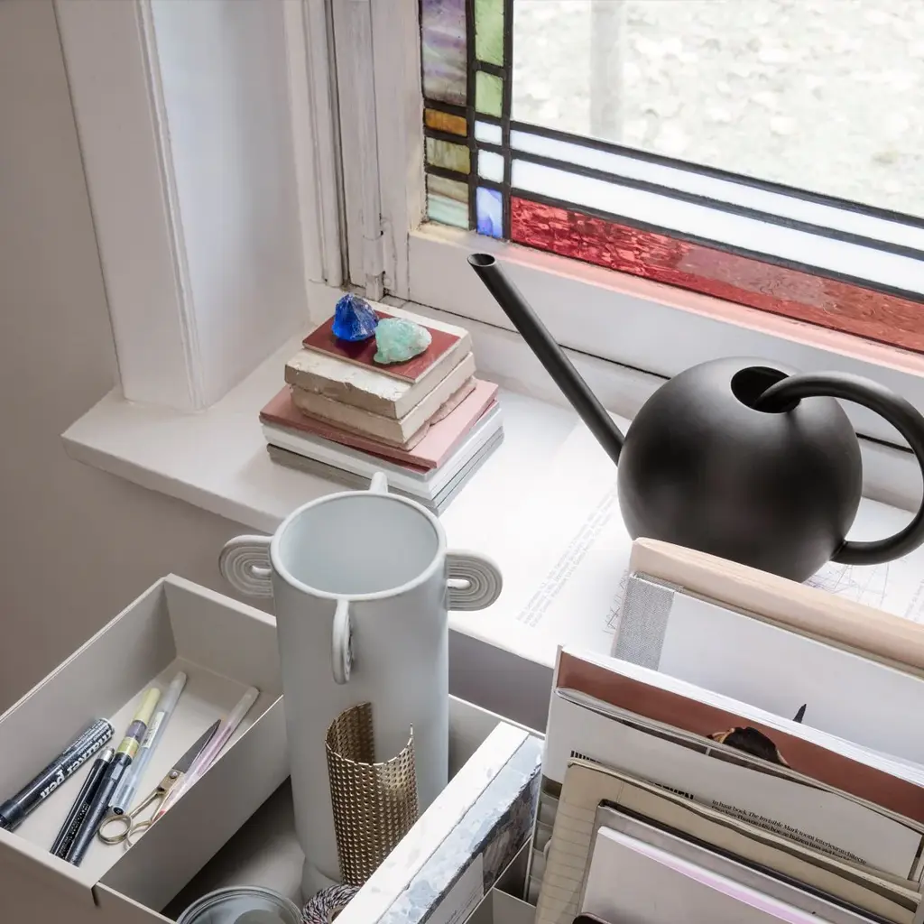 Deploying a sphere as the body, this watering can is able to hold up to two litres of water despite its small size. The Orb Watering Can presents a clean design with the charismatic detail of the handle continuing through the top hole. Its details form a sculptural piece, which you can put on display rather than hide in-between watering your plants.
