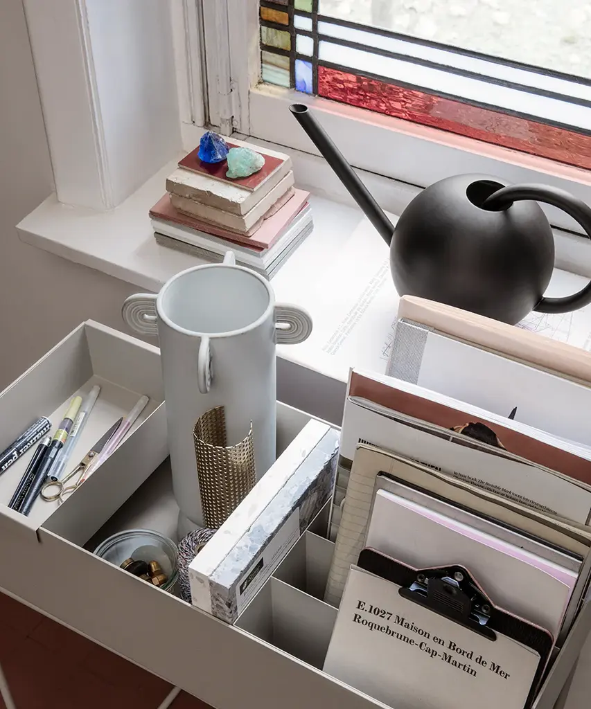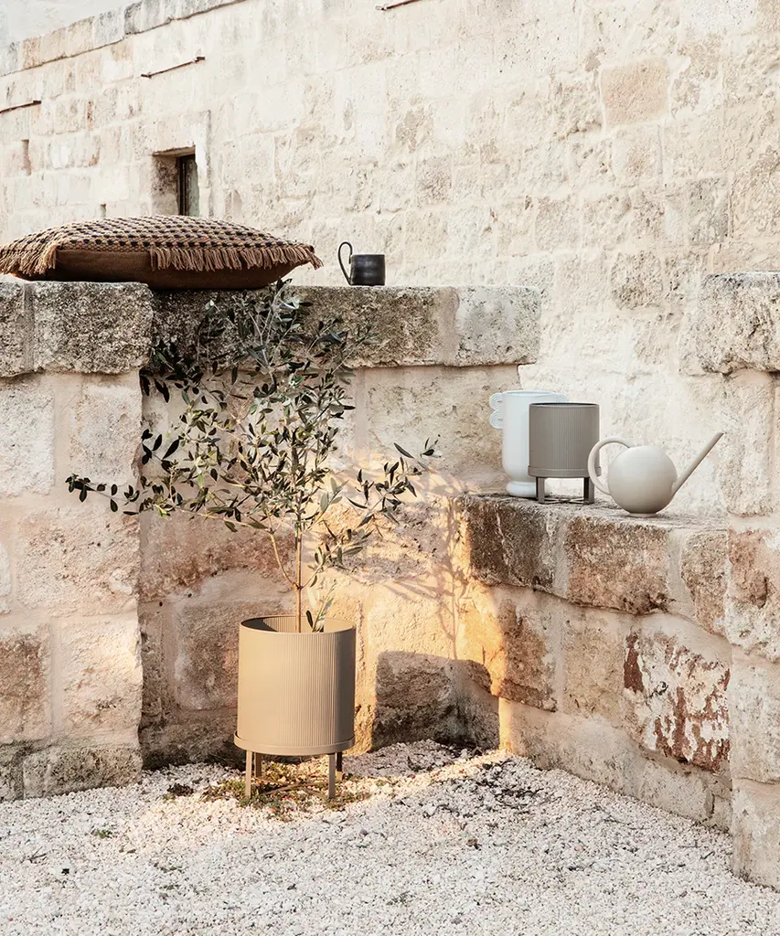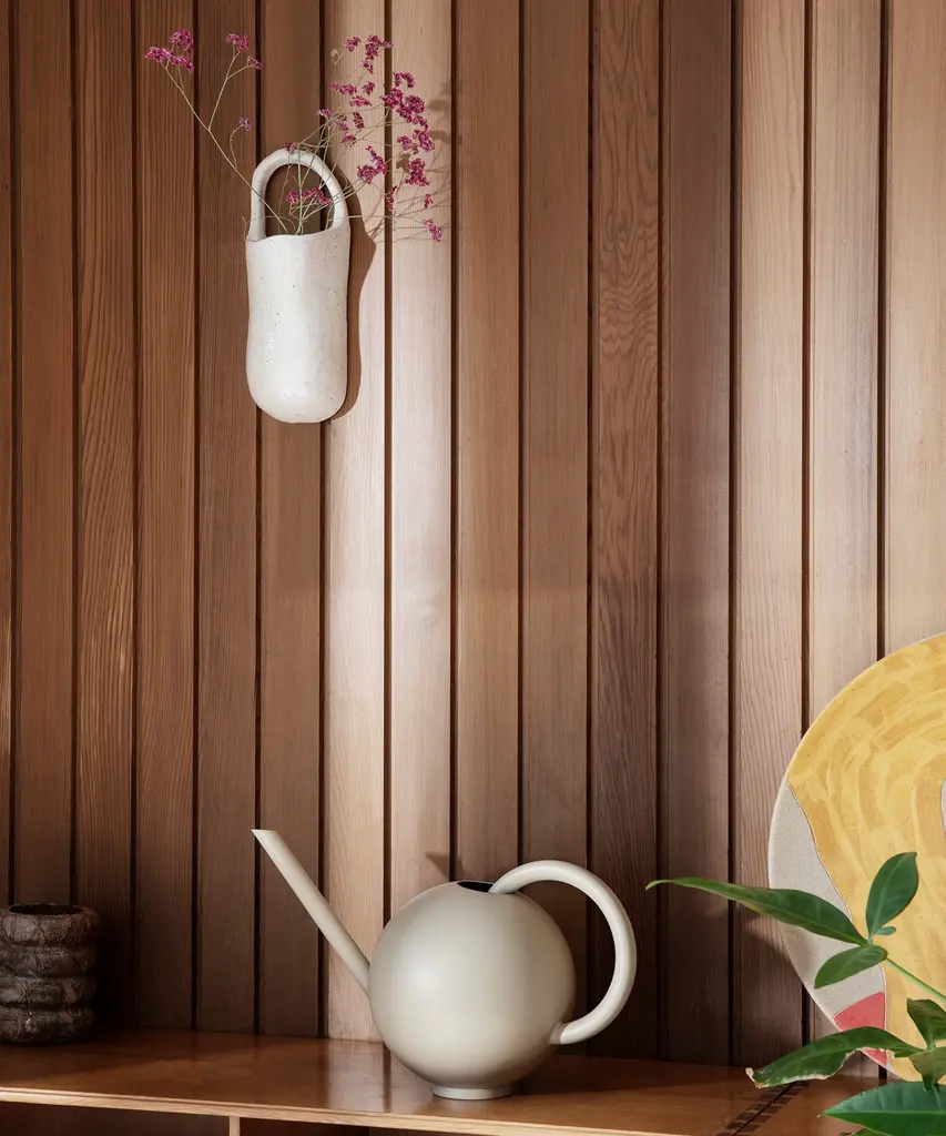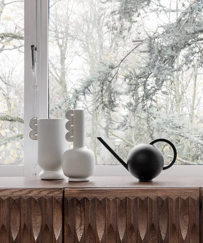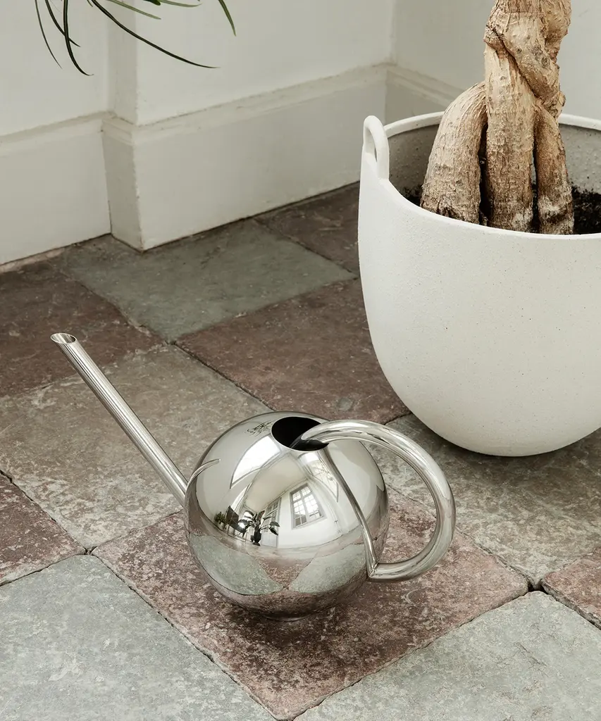 Deploying a sphere as the body, this watering can is able to hold up to two liters of water despite its small size. The Orb Watering Can presents a clean design with the charismatic detail of its handle continuing through the top hole. Its details form a sculptural piece, which you can proudly display. Designed and produced by the Copenhagen-based studio Ferm Living.