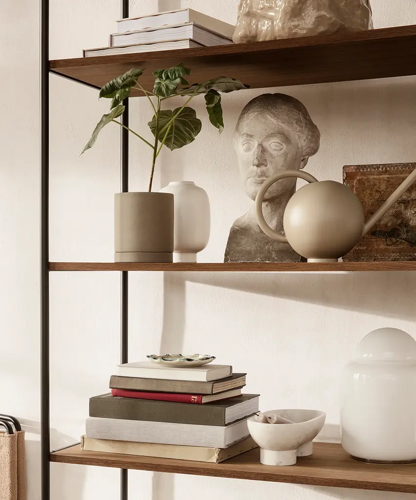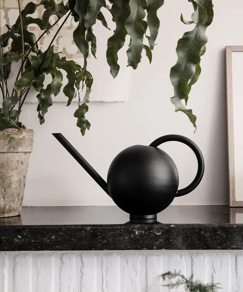 Deploying a sphere as the body, this watering can is able to hold up to two liters of water despite its small size. The Orb Watering Can presents a clean design with the charismatic detail of its handle continuing through the top hole. Its details form a sculptural piece, which you can proudly display. Designed and produced by the Copenhagen-based studio Ferm Living.