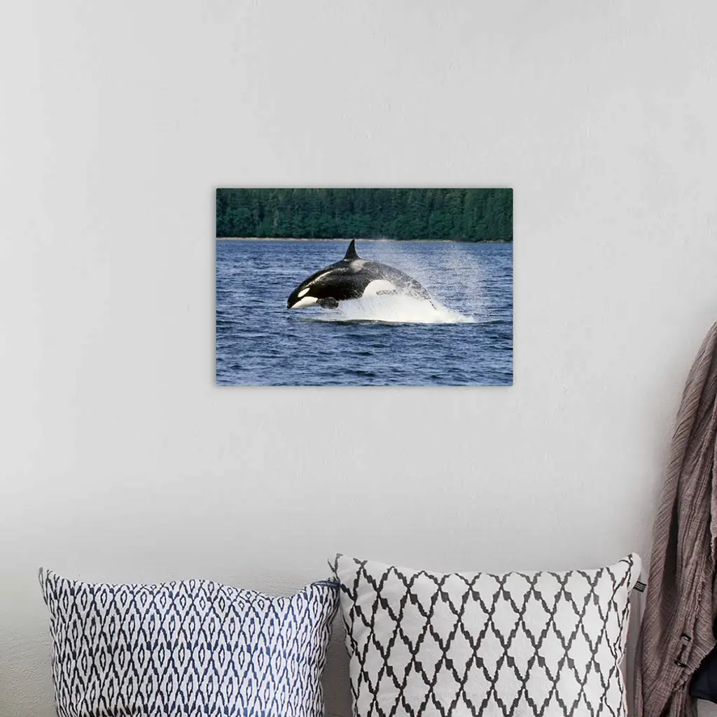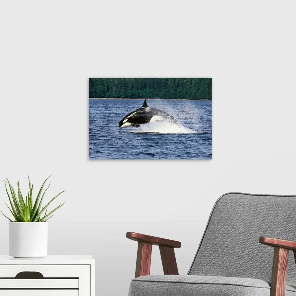Orca whale breaching Cross sound inside passage SE AK Southeast Alaska summer