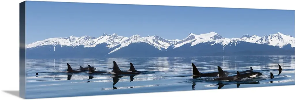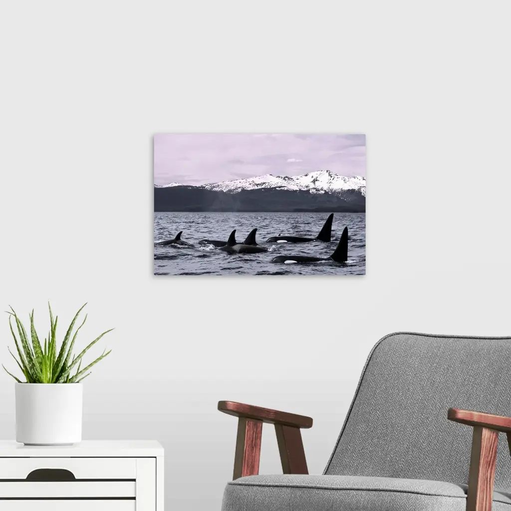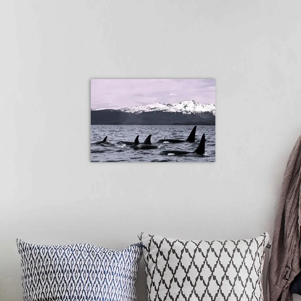 Orca Whales surface in Lynn Canal with Chilkat Mountains in the distance, Alaska wall art for home and office decor. Discover canvas art prints, photos, mural, big canvas art and framed wall art in GreatBigCanvas.com's varied collections.