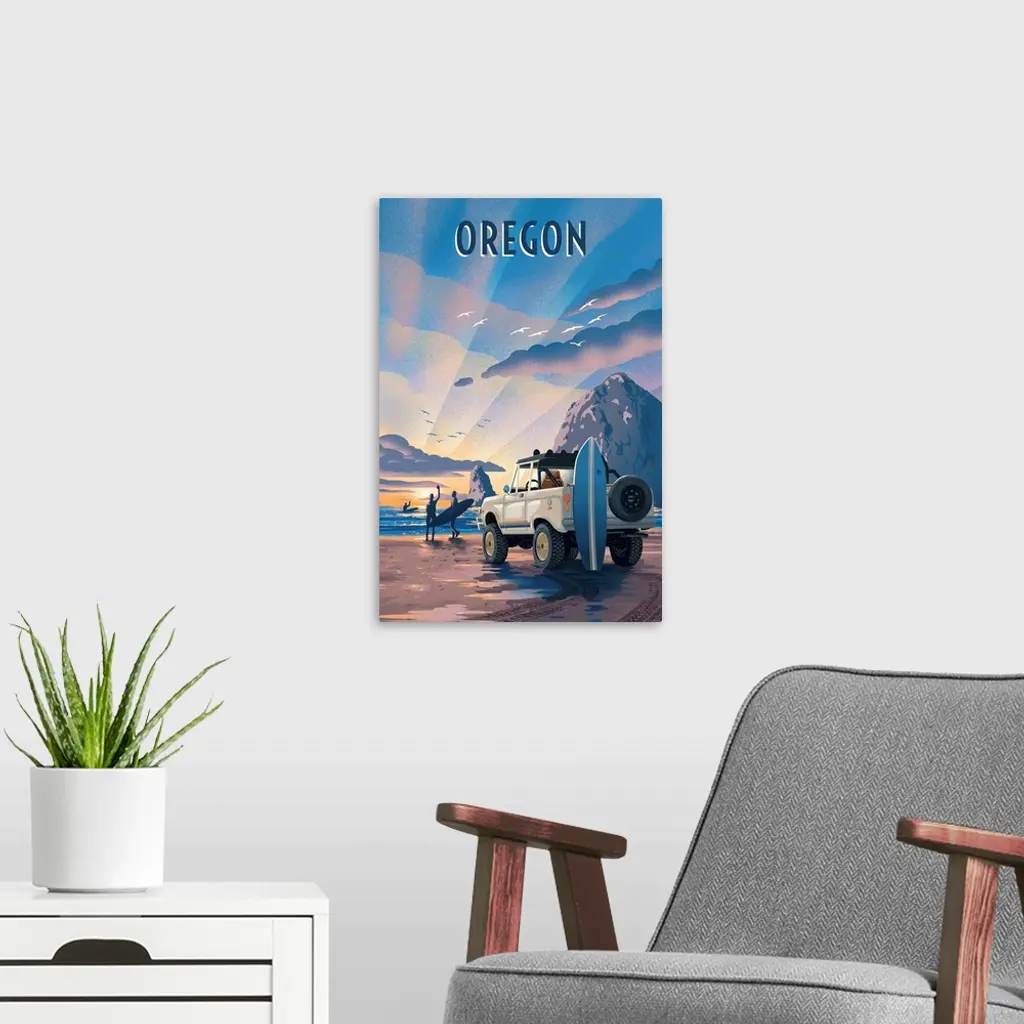 Oregon - Lithograph - Surfers on Beach wall art for home and office decor. Discover canvas art prints, photos, mural, big canvas art and framed wall art in GreatBigCanvas.com's varied collections.