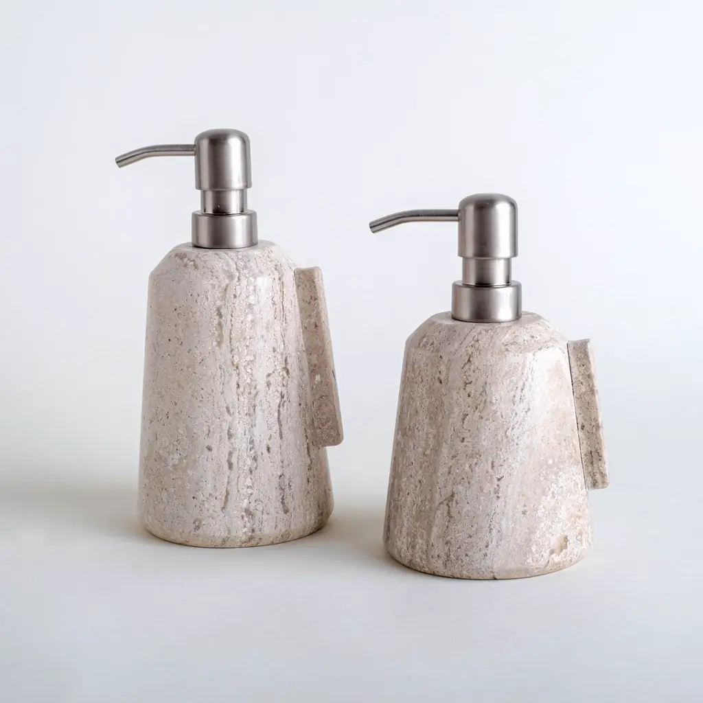 Dispenser made of travertine marble. Perfect for pouring, body cream, antibacterial gel, liquid soap etc. Beautiful elegant accessory for bathroom vanity or shower. Create the perfect set and beautify any bathroom with our other bathroom accessories: tray, containers, dispensers, brushes, jars, tissue boxes.Also made in other marble colors.