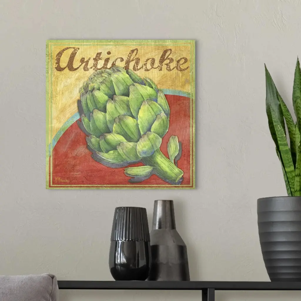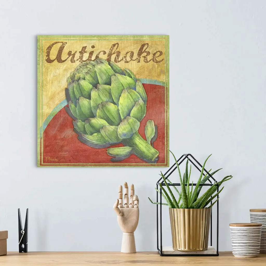 Rustic-style farmer's market sign with a harvested artichoke.