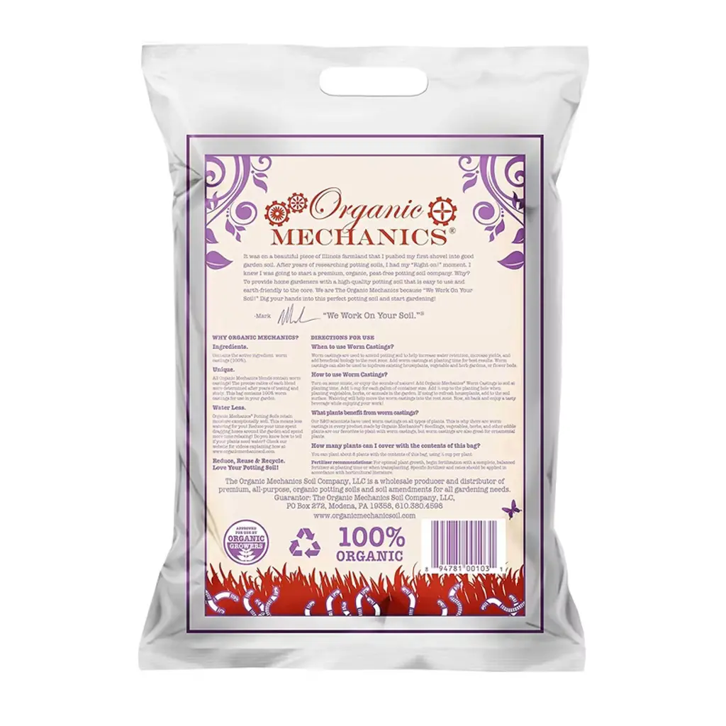 Organic Mechanics Worm Castings Organic Soil Amendment is a natural fertilizer made from nutrient-rich peat humus consumed by nightcrawlers. As earthworms digest this material, it undergoes beneficial transformations, resulting in a highly fertile "super humus." This enriched topsoil promotes optimal root growth and contains essential nutrients in a readily available, water-soluble form. When used during transplanting, even in small amounts, the worm castings significantly enhance plant size and productivity. The positive effects of these castings are evident in the vibrant growth and yields of plants.