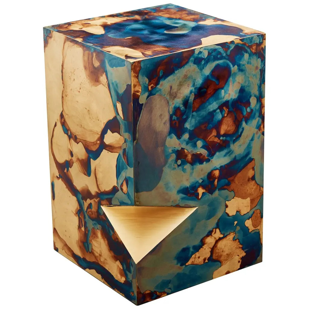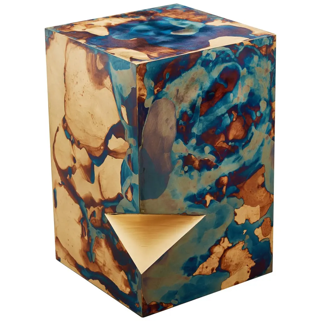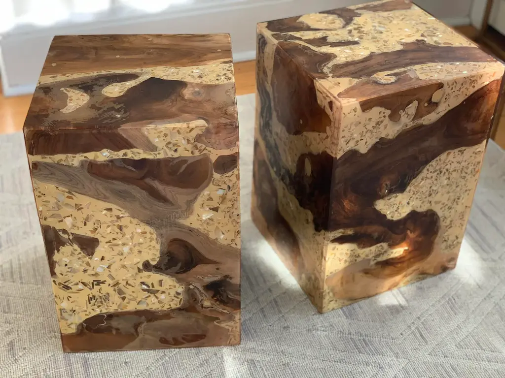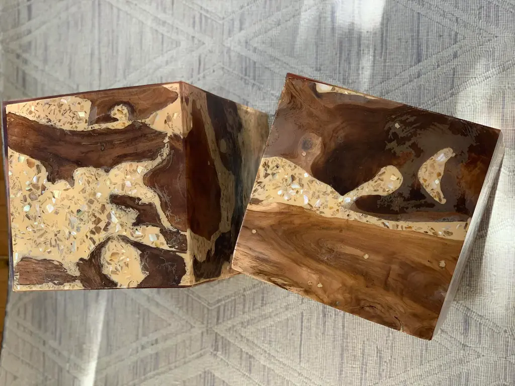 Organic Modern Teak Wood Resin Cube With Yellow Amber Terrazzo