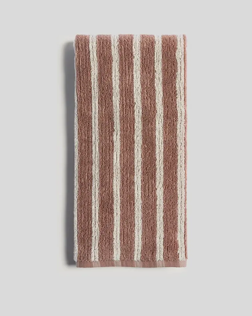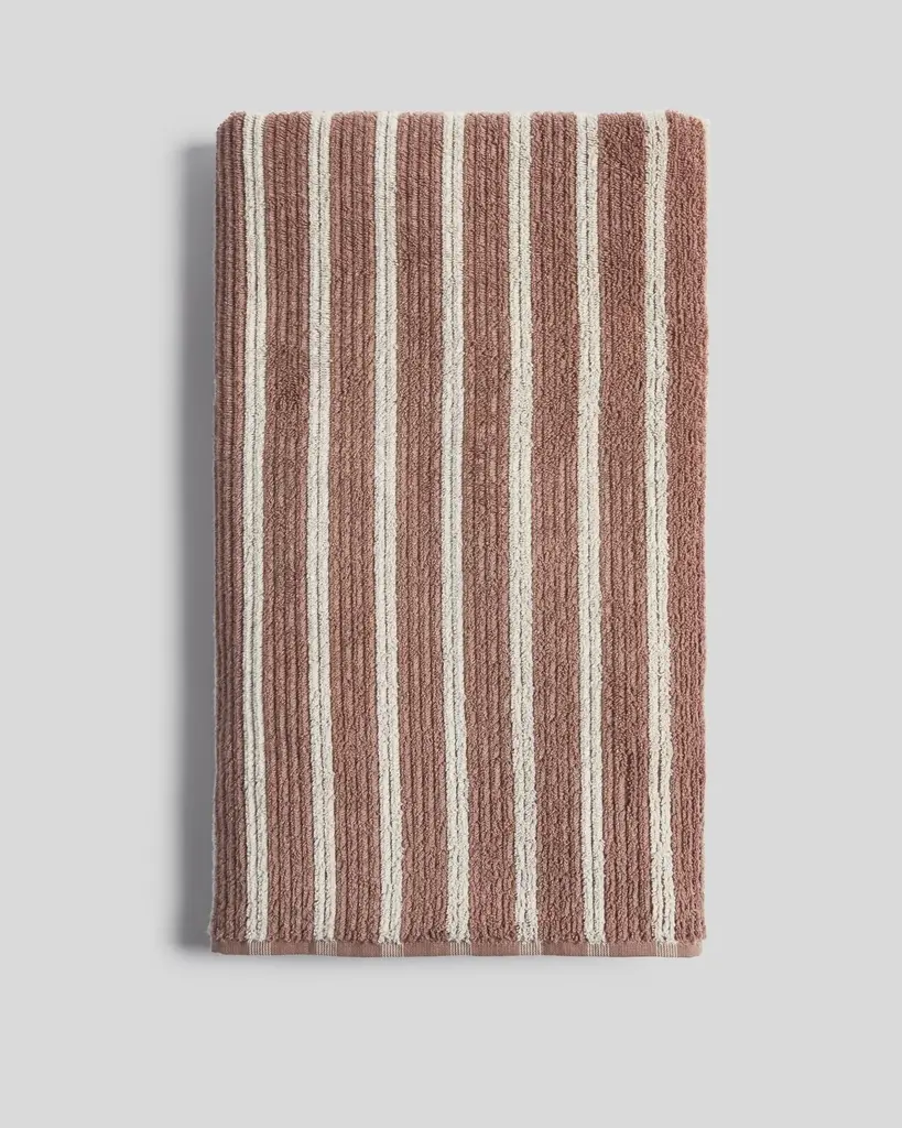 Evoking seaside resort beach towels, these striped bath linens are like your own little slice of paradise. Crafted from pure organic cotton in a supersoft ribbed texture to be sustainable, absorbent andquick-drying.