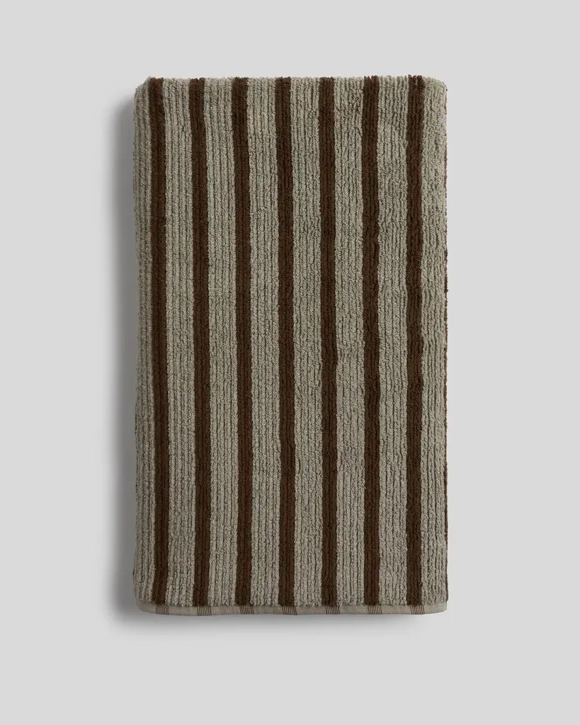 Evoking seaside resort beach towels, these striped bath linens are like your own little slice of paradise. Crafted from pure organic cotton in a supersoft ribbed texture to be sustainable, absorbent andquick-drying.