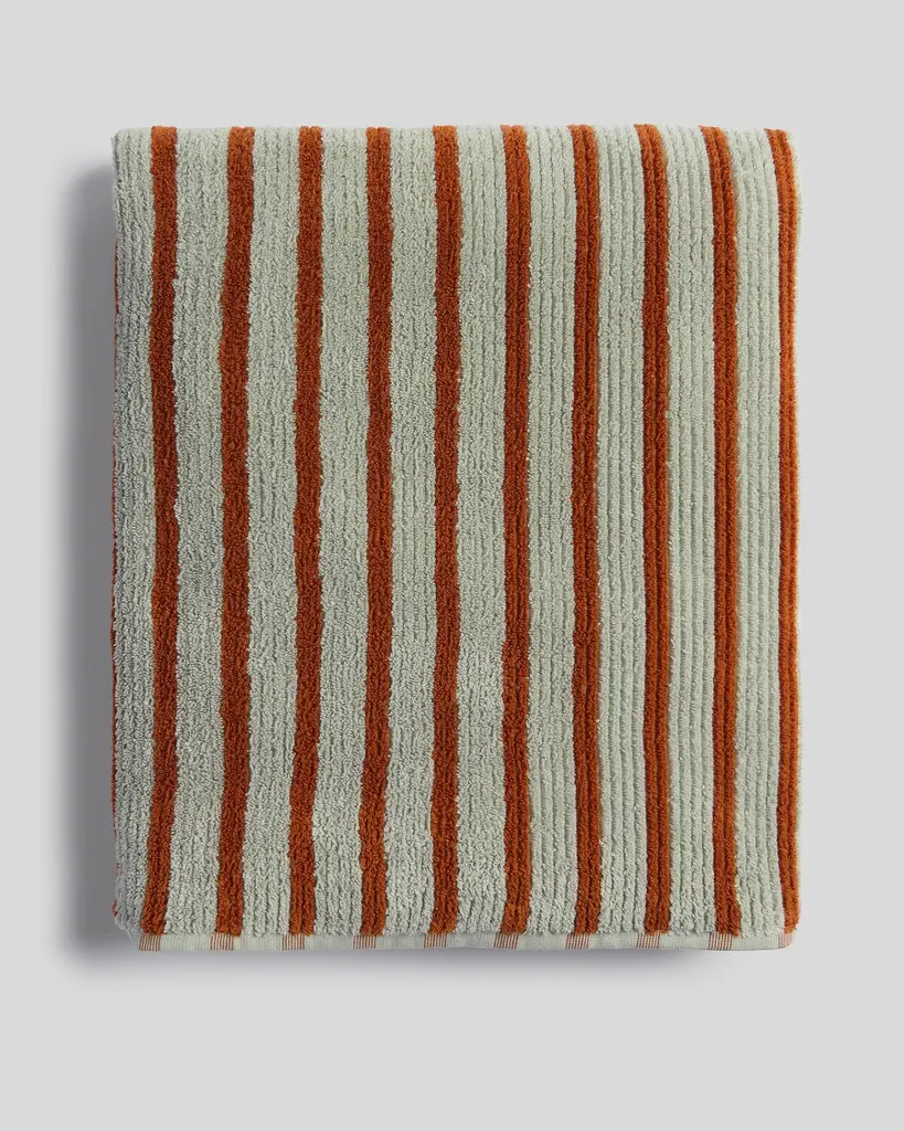 Evoking seaside resort beach towels, these striped bath linens are like your own little slice of paradise. Crafted from pure organic cotton in a supersoft ribbed texture to be sustainable, absorbent andquick-drying.