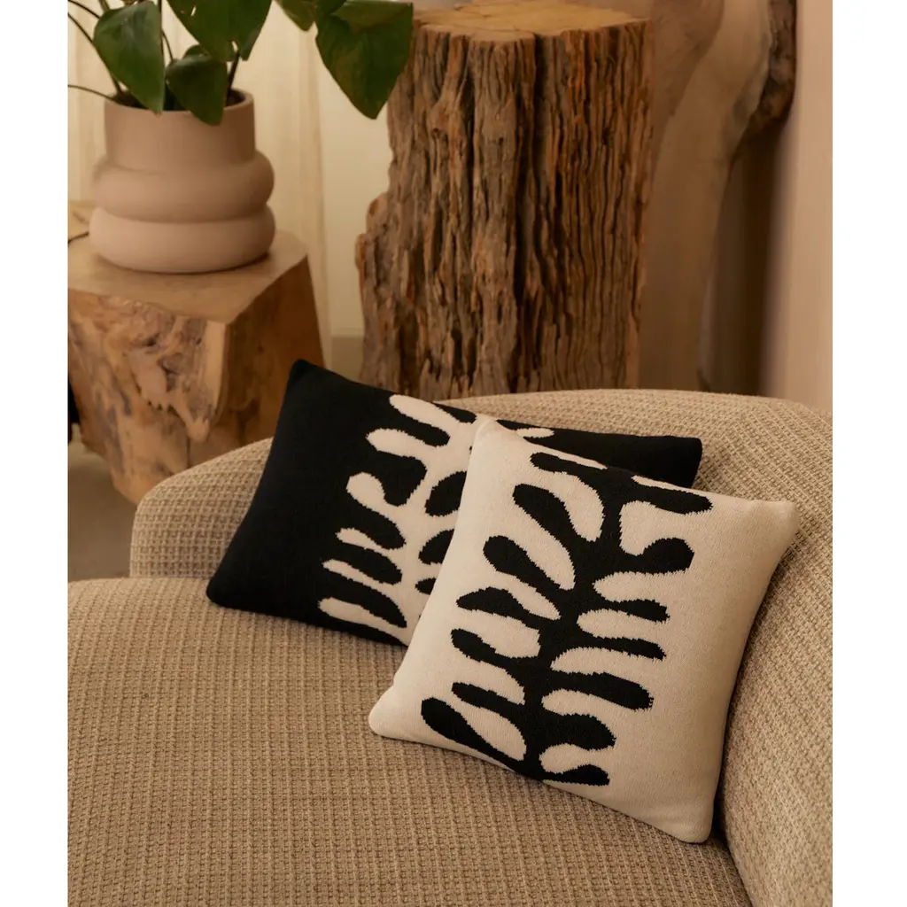 Organic Shape Wool & Cashmere Knitted Cushion Rectangular Black