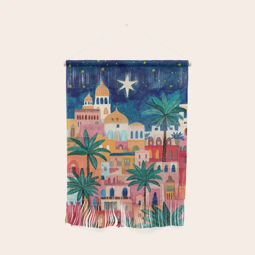 Oriental City Under A Starry Sky In Bright Colours Wall Hanging