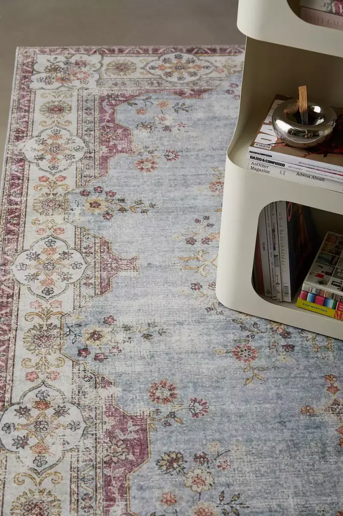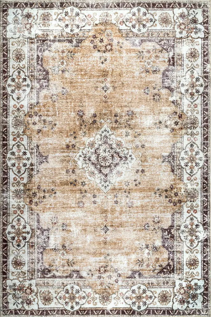 Decorate your space with this statement rug featuring a central medallion print in soft hues with worn-in vintage-inspired finishes. Lightweight and durable, this worry-free rug is machine washable, making it perfect for the high-traffic areas in your space, from your entryways to your living room. **Features** \- Statement washable rug \- Features a vintage-inspired medallion print \- Finished with nonslip backing - no rug pad required \- Easy to clean - just toss it in your washing machine \- Durable silhouette is perfect for high-traffic areas **Content + Care** \- 100% Polyester \- Machine wash \- Imported