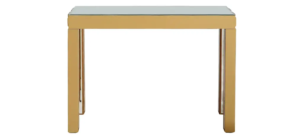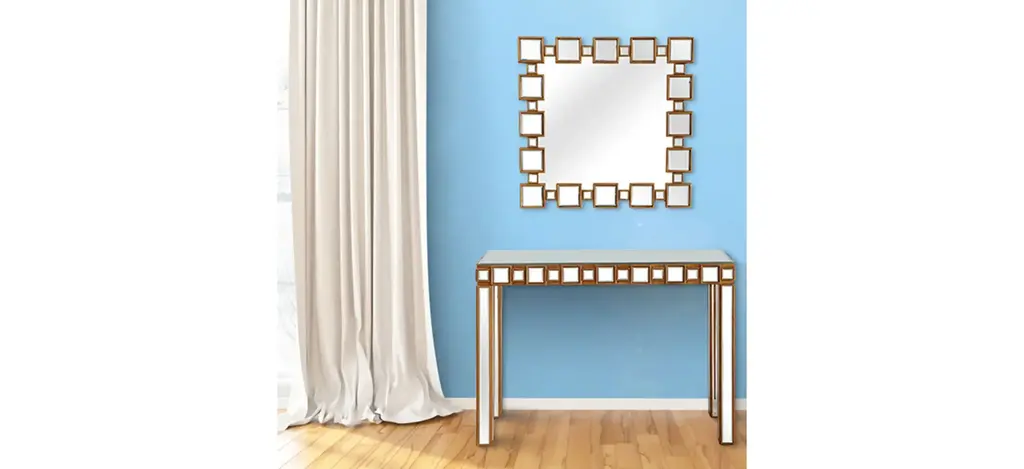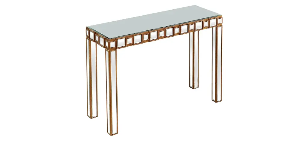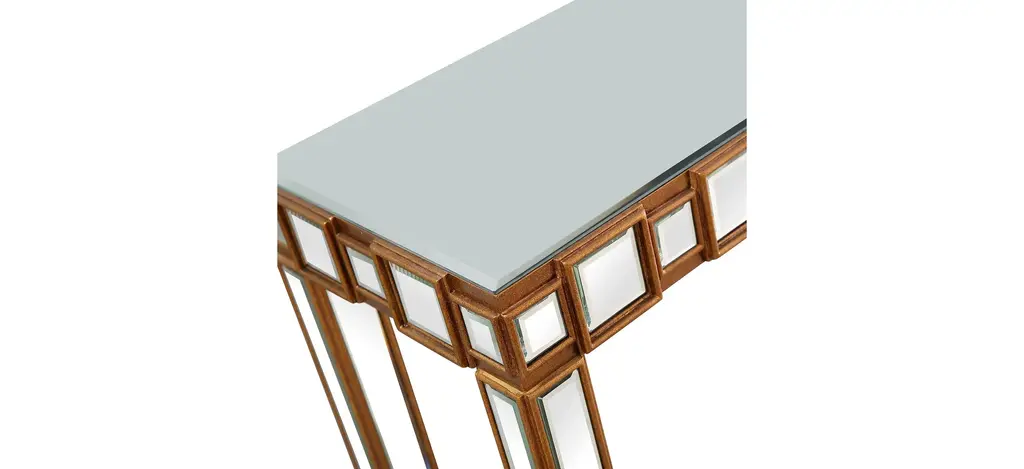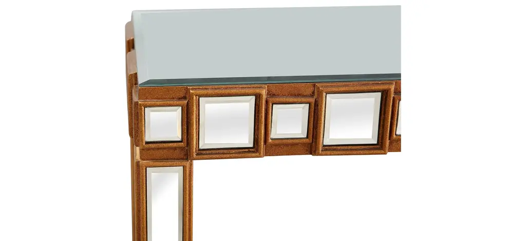 The Orion Console is the perfect complement to our Orion Wall Mirror. This console patterns the same concept with a mirror within a mirror design, in a sleek, contemporary way. At just under 15 inches in depth, the Orion Console can easily tuck into any tight space but still offer ample surface area, with slightly under 4 feet in width. A buffet lamp, your favorite vase, or floral arrangement would take center stage atop the mirrored backdrop. Welcome the Orion into your home today.
