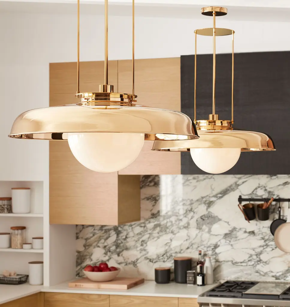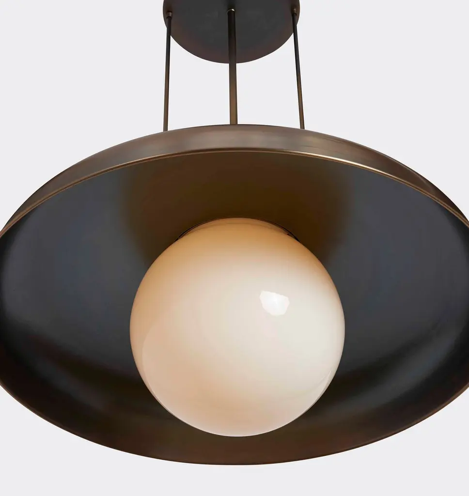 Ormandy channels Mid-Century Danish design, featuring a layered silhouette that showcases an inner shade nested within an oversized form.