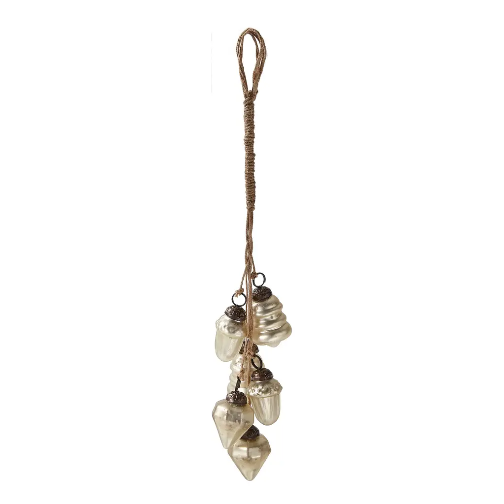 add a distinctive, magical touch to your home this holiday season. made from glass this ornate geometric cluster is the perfect addition to any tree, gift boxes and bags, or wine bottles. the weathered, antique look brings a vintage vibe without sacrificing style or elegance. mix and match with multiple sizes and styles for a more dramatic effect. artisan made. slight color variations are to be expected each piece is one-of-a-kind, no two pieces will be exactly alike.Artisan made blown glass ornament. Metal details.Crafted from glass & metal & ropeOrnament measures 12 inch h x 3 inch l x 3 inch w.