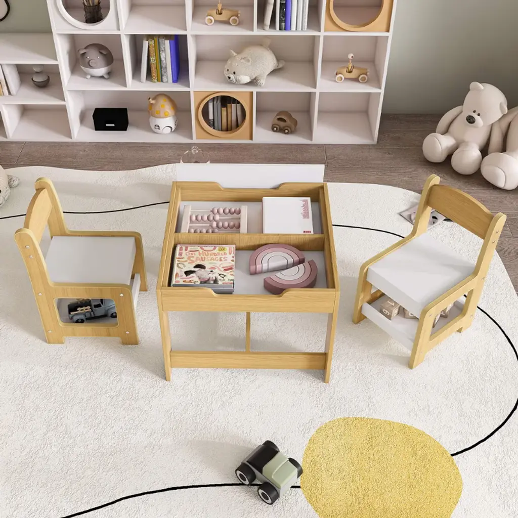 This 3-in-1 Kids Study Table & Chairs Set is the ultimate multifunctional solution for your child’s learning and playtime needs. The innovative detachable blackboard top easily switches between a smooth surface for reading and writing and a chalkboard for creative drawing, encouraging kids to explore various activities in one place. Crafted from durable engineered wood (MDF), this nursery furniture set ensures long-lasting use while providing a sturdy and safe space for toddlers to engage in focused study or imaginative play. Its compact and space-saving design makes it a perfect addition to any playroom or nursery, blending practicality with child-friendly aesthetics.