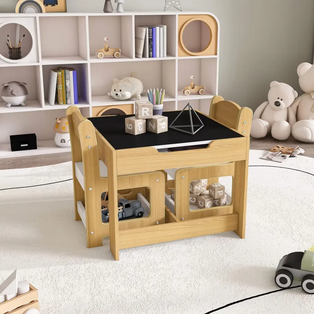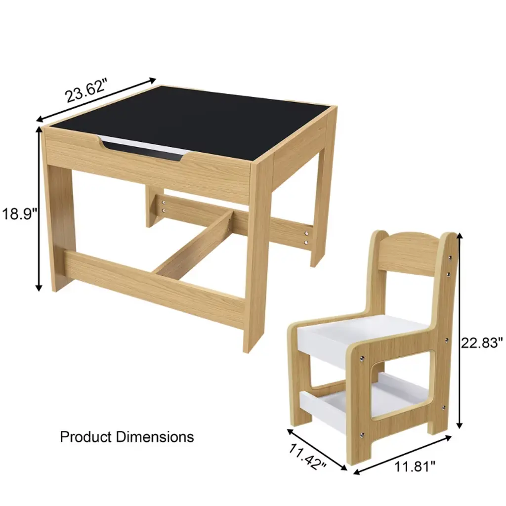 Orrd 3-in-1 Kids Study Table & Chairs Set - Detachable Blackboard Activity Desk With Durable Mdf For Toddlers