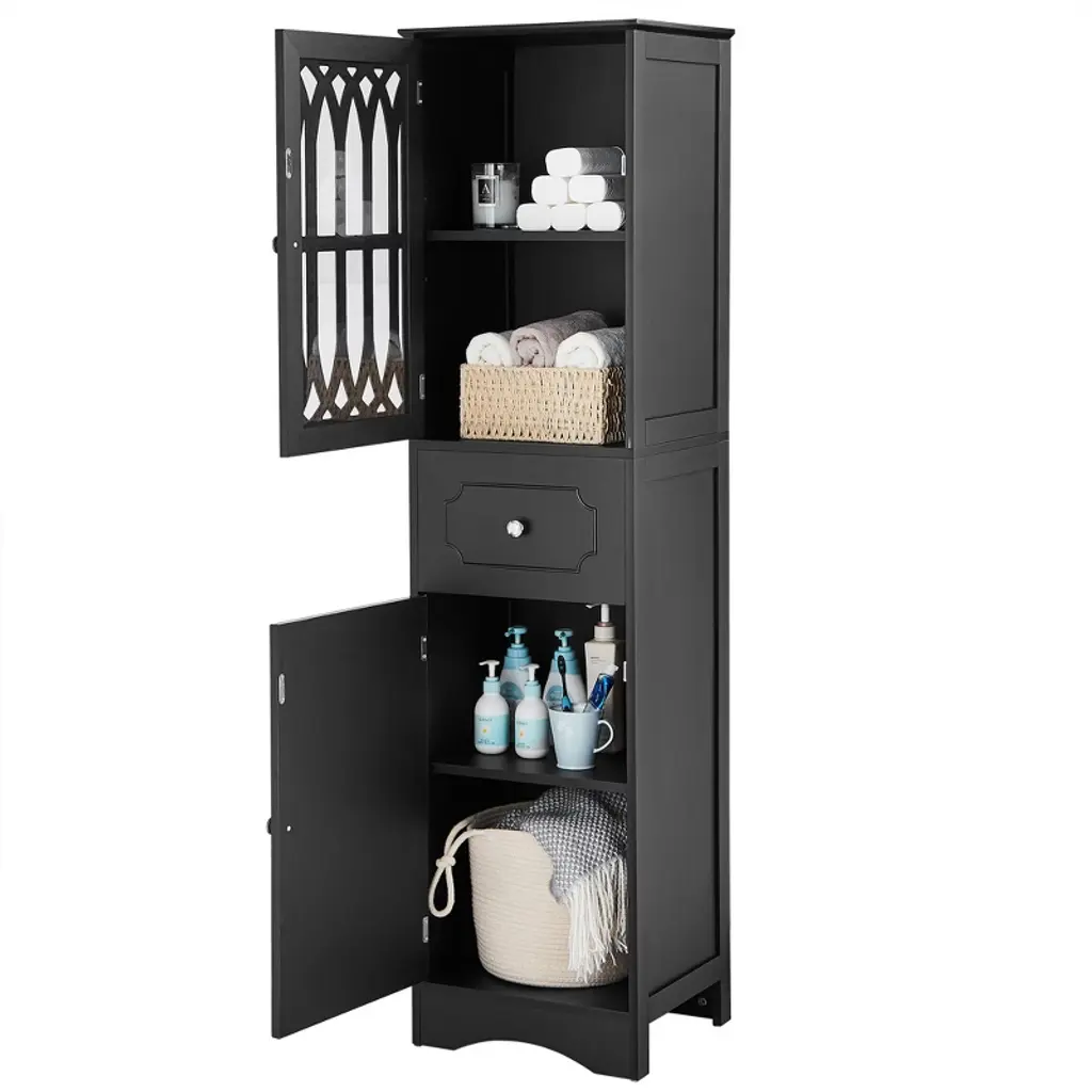 Introducing the 38-inch tall double-door storage rack, a perfect solution for all your organizing needs. With its generous height, this rack offers high capacity to hold a variety of items, from books and toys to kitchen essentials and toiletries. The double-door design not only keeps your belongings dust-free but also provides a neat and tidy look. What makes it stand out is its multi-scene use – it fits perfectly in the living room to store sundries, in the kitchen for utensils, in the bathroom for toiletries, or even in the study for books. Sturdy and practical, this storage rack is designed to serve you well in any space, adding both functionality and a touch of order to your home.