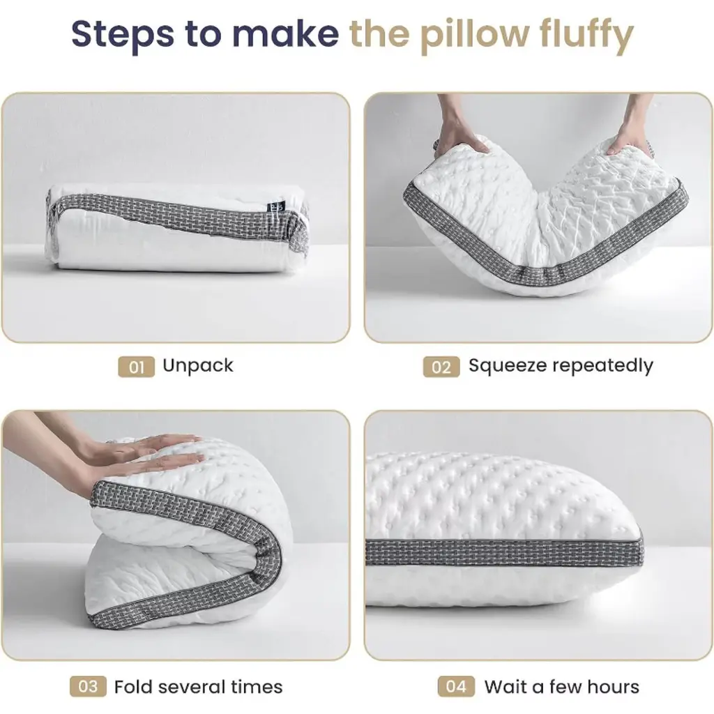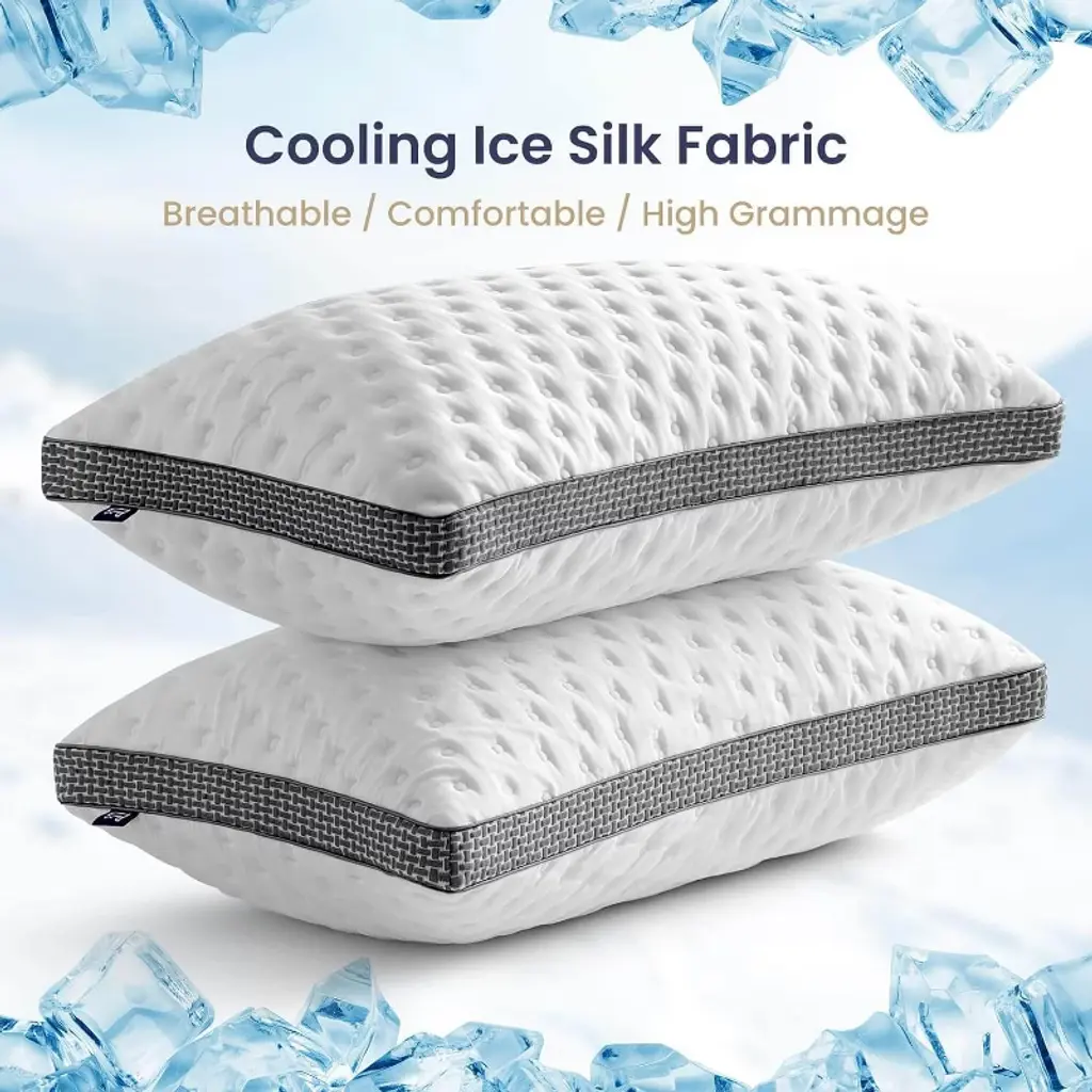 King Size Cooling Gel Memory Foam Pillow – Experience cooler, pain-free sleep with our CertiPUR-US certified pillow! The breathable ice silk cover keeps you cool all night, while the adjustable memory foam supports any sleep position. Hypoallergenic & odor-free for healthy rest. 100% satisfaction guaranteed – try risk-free today!