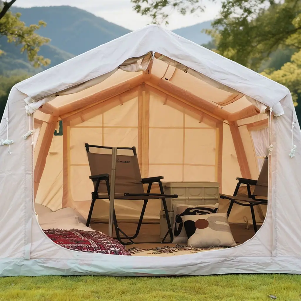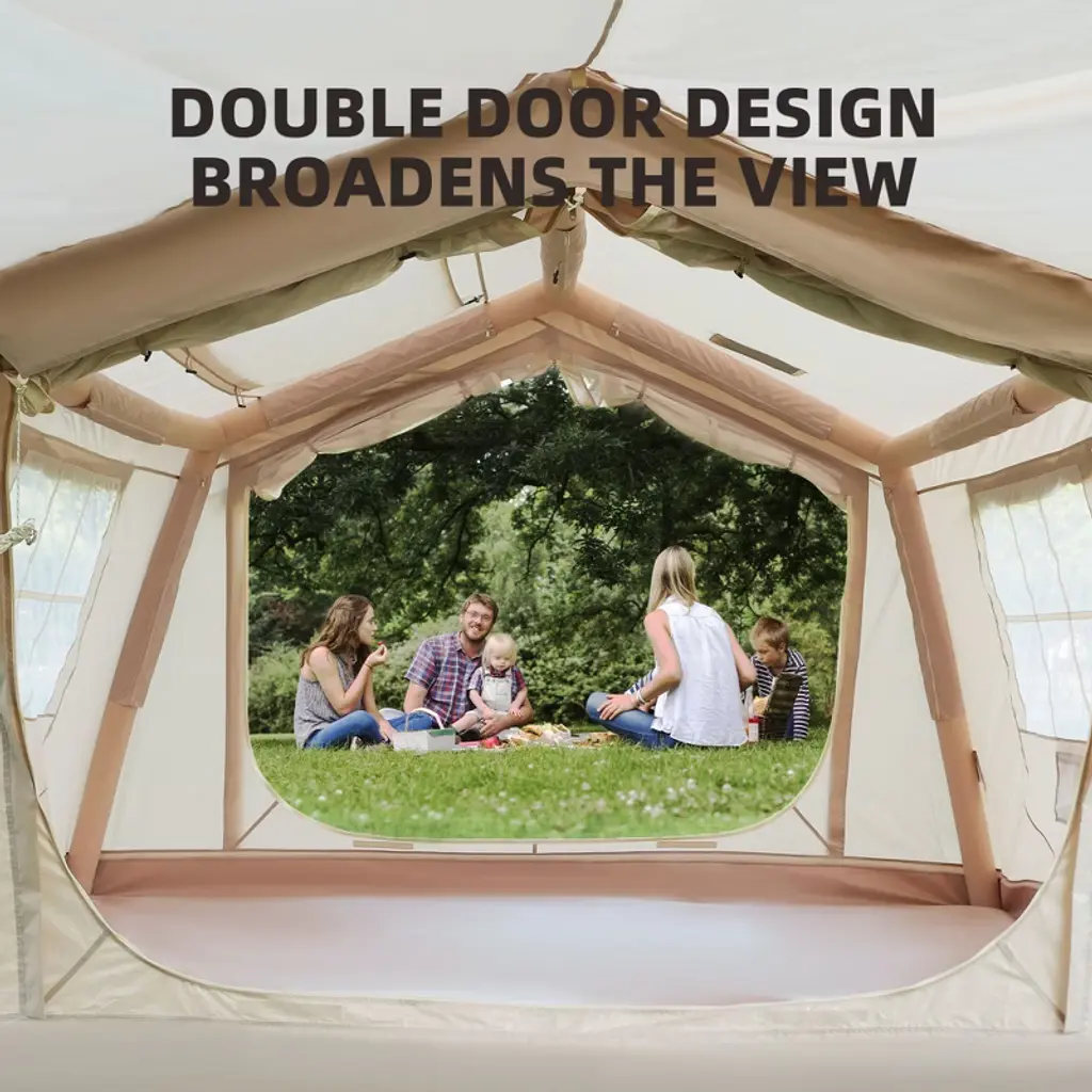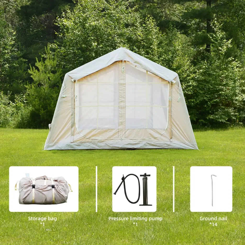 Upgrade your camp! This 8m² inflatable tent sets up in 5 mins with the included pump. The 4-season waterproof design features a STOVE JACK for safe heating & an AC port for summer cool. With high ceilings, large mesh windows, and spacious interior for 4-6 people, it's perfect for all-weather glamping. Get comfort & convenience in one!