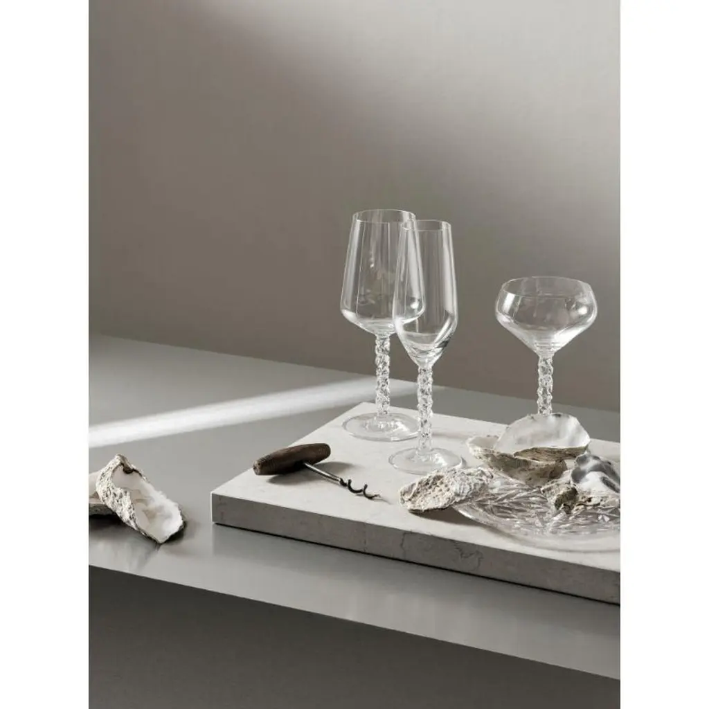 The Carat collection is based on a contemporary interpretation of the traditional cut glass for which Orrefors is world-renowned. Carat Wine has a stem covered with the collection’s characteristic asymmetrical motif, which produces beautiful reflections of light in the crystal. The wine glass holds 14.8 oz and is designed for all beverages but is particularly well-suited for wine. Designed by Lena Bergström.