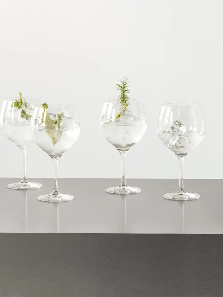 Gin and Tonic from Orrefors has a large, balloon-shaped bowl that holds 22 oz, which provides space for plenty of ice and garnishes, like rosemary or black pepper. The large surface of the bowl adds space for more bubbles allowing them to “transport” the aroma in the beverage, resulting in an unusually nuanced taste experience.