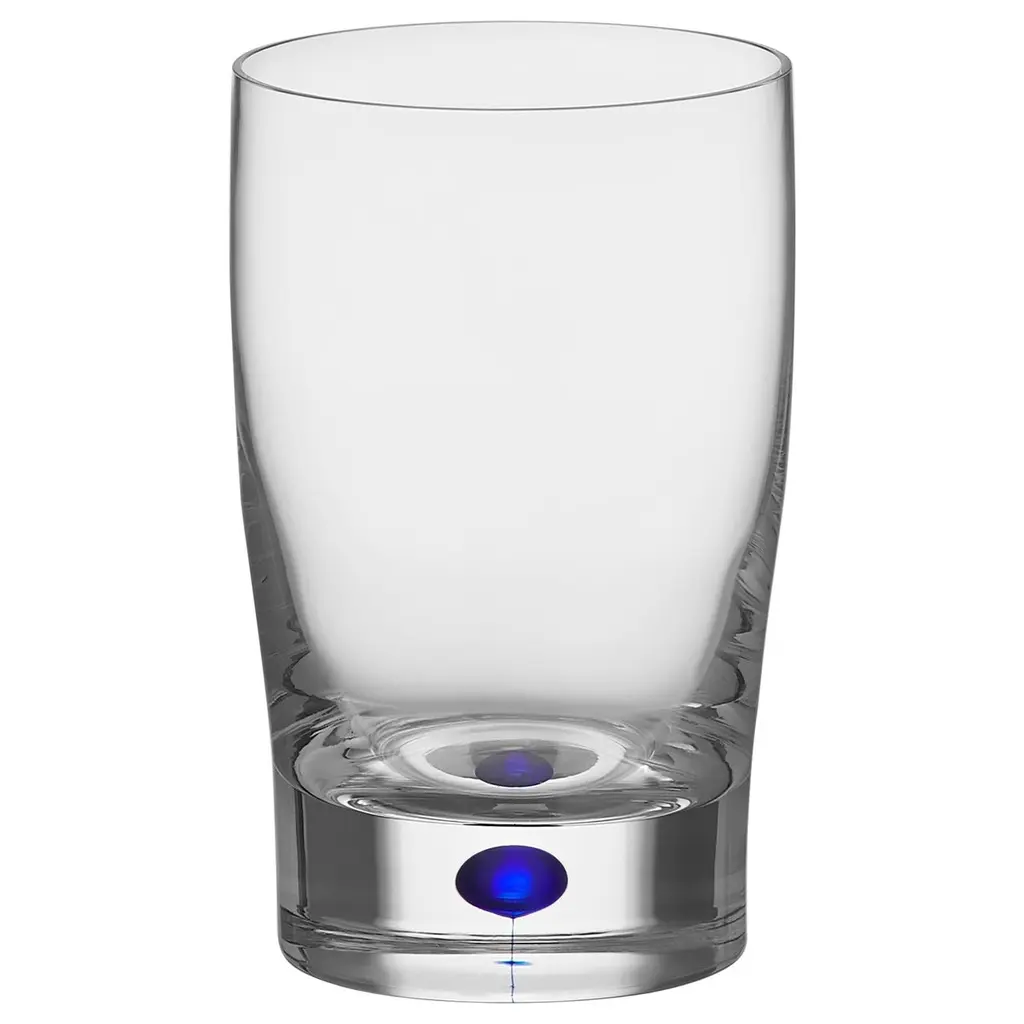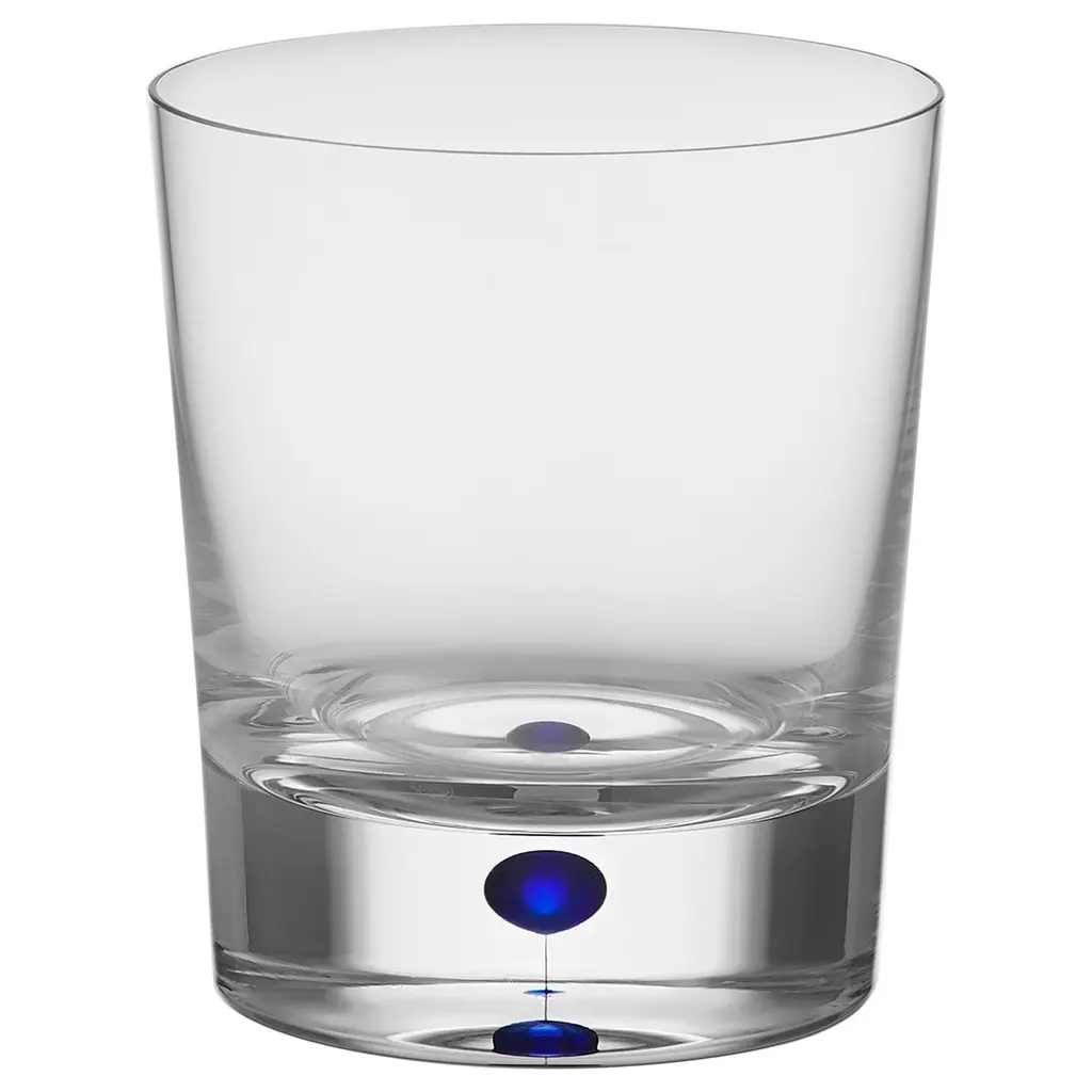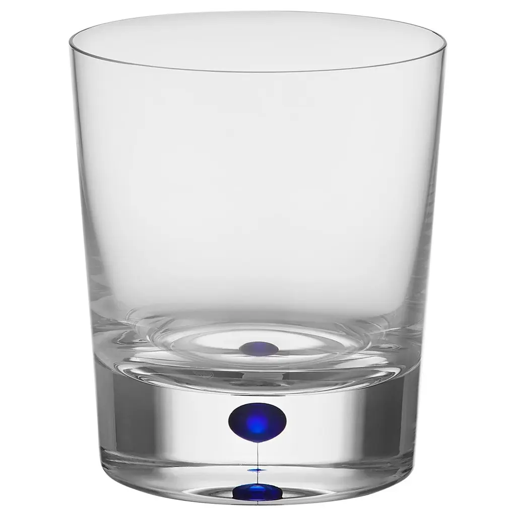 Intermezzo Old Fashioned/Whiskey from Orrefors was designed in 1984. The glass, which holds 8 oz, is outstanding for serving spirits or cocktails, with or without alcohol. Intermezzo OF/Whiskey is mouth-blown in Sweden by expert glassblowers and has a drop of blue sealed in the bottom – an innovation based on traditional glass craftsmanship. Designed by Erika Lagerbielke.