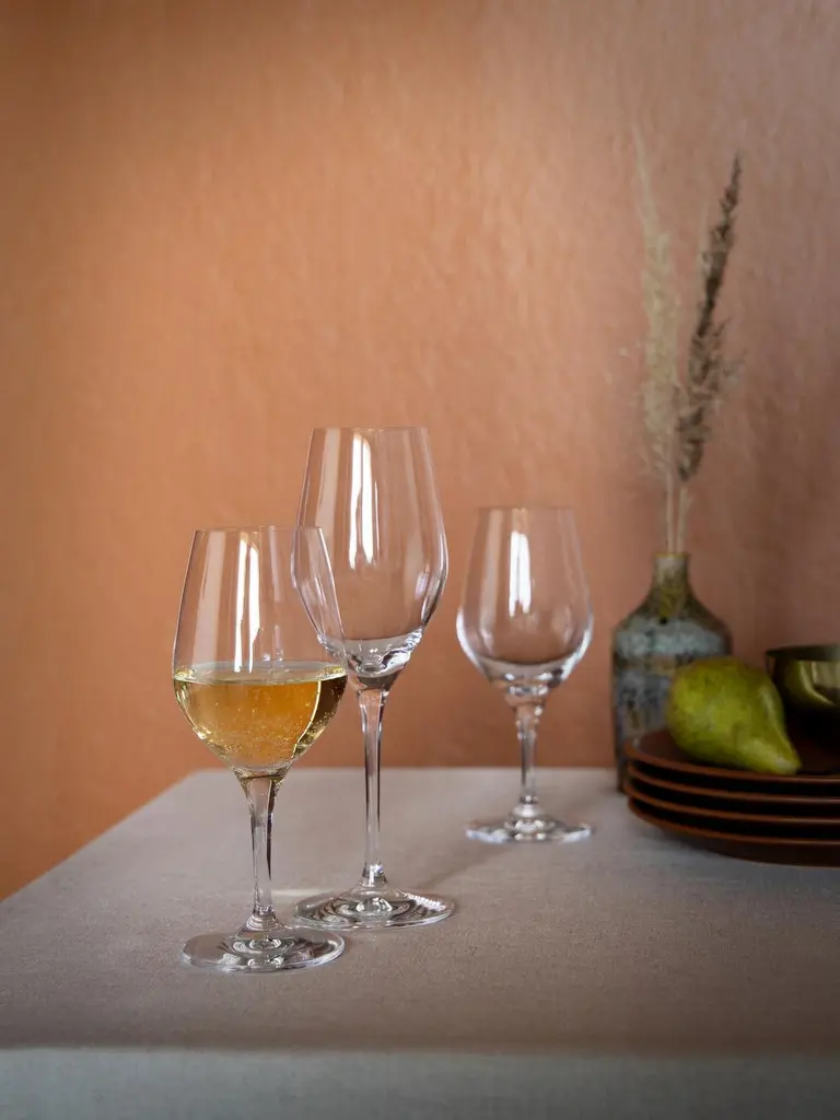 Sense Universal by Orrefors Designs, which holds 9.3 oz, is an all-purpose glass for all beverages, such as beer, wine, and non-alcoholic drinks.
